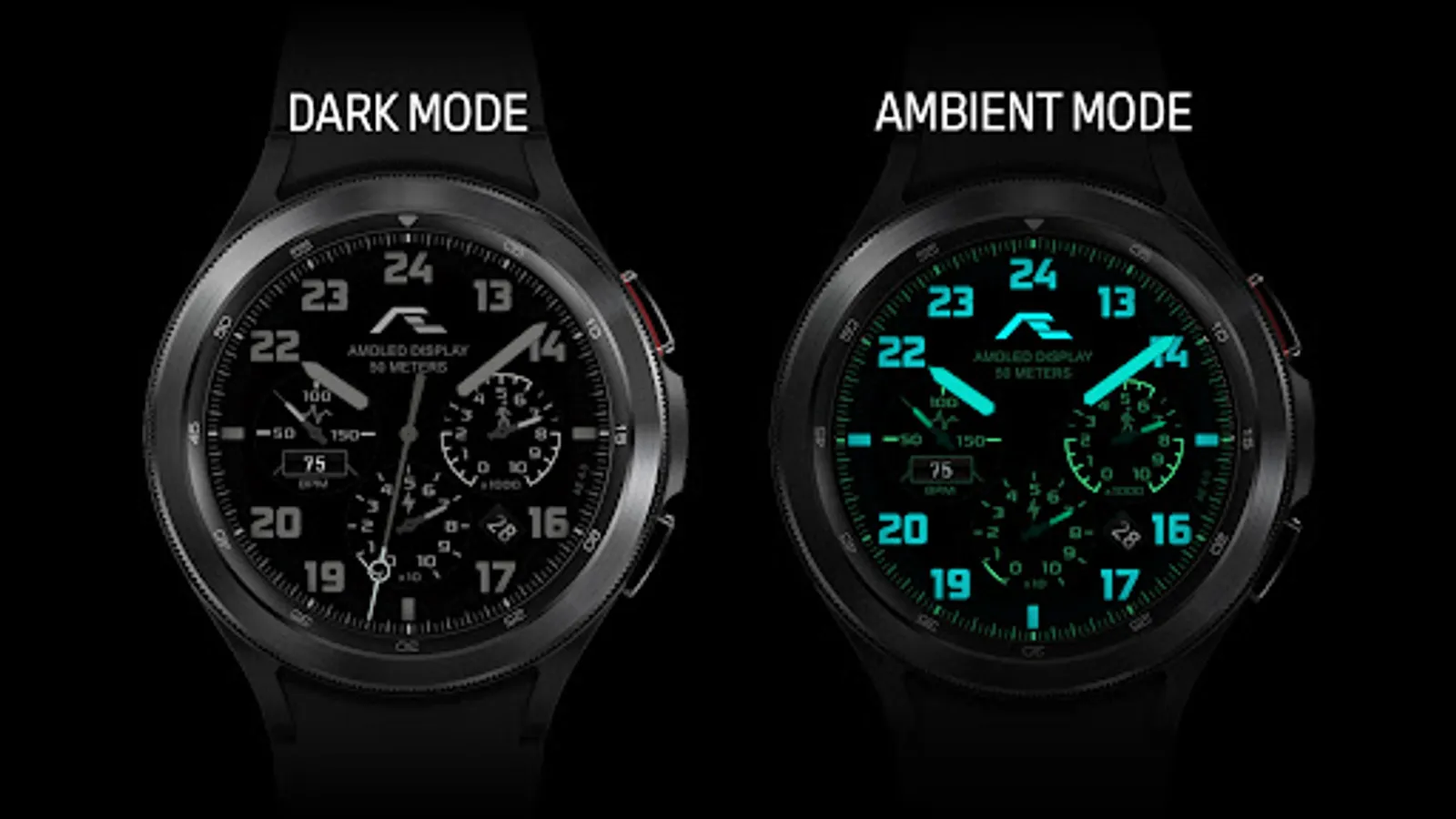 Complemented with super blue luminous ambient mode. A watch face that suits day or night.