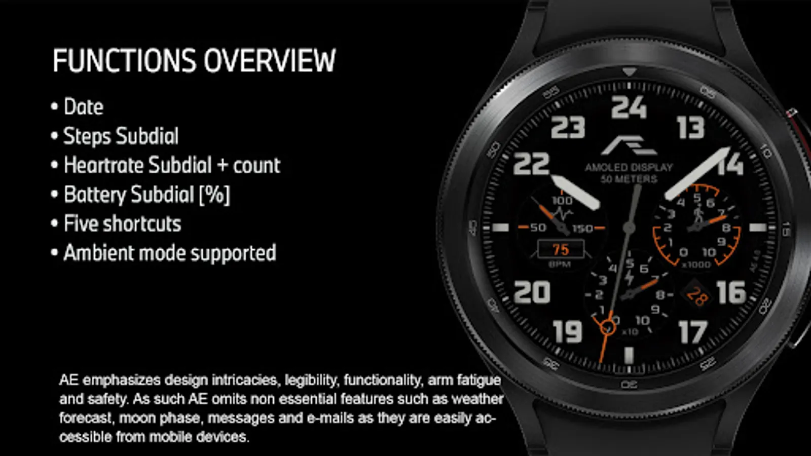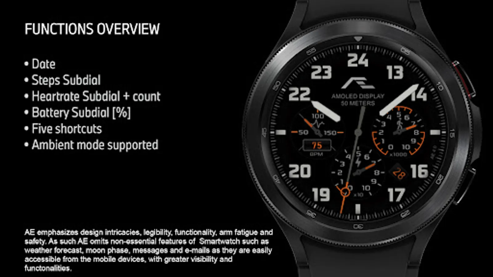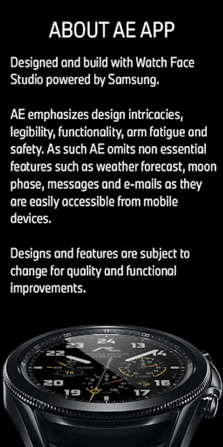 Build with Watch Face Studio powered by Samsung. Tested on Samsung Watch 4 Classic, all features, and functions worked as intended. The same may not apply to other Wear OS watches.