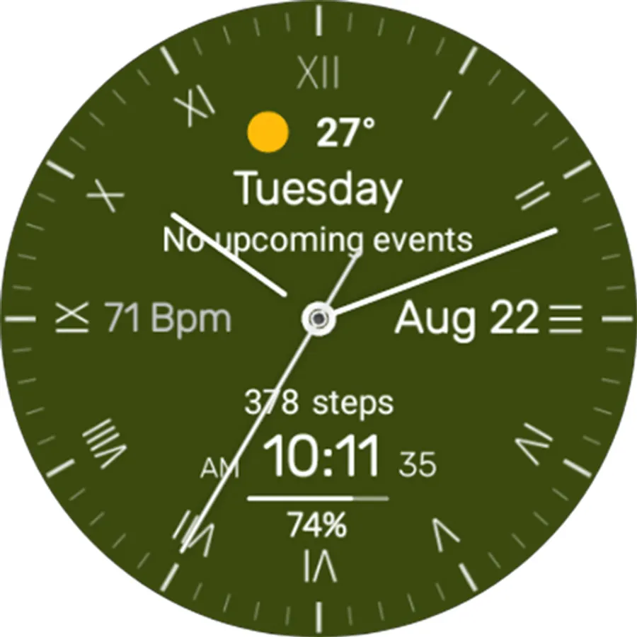 This watch face supports all Wear OS devices with API level 28 or higher.