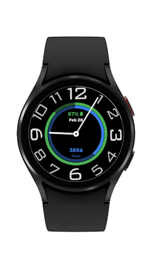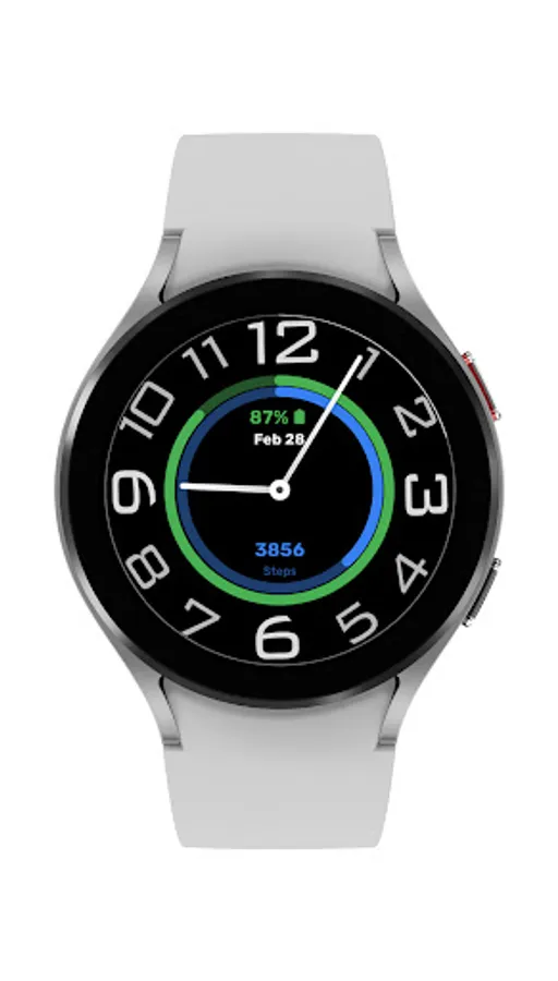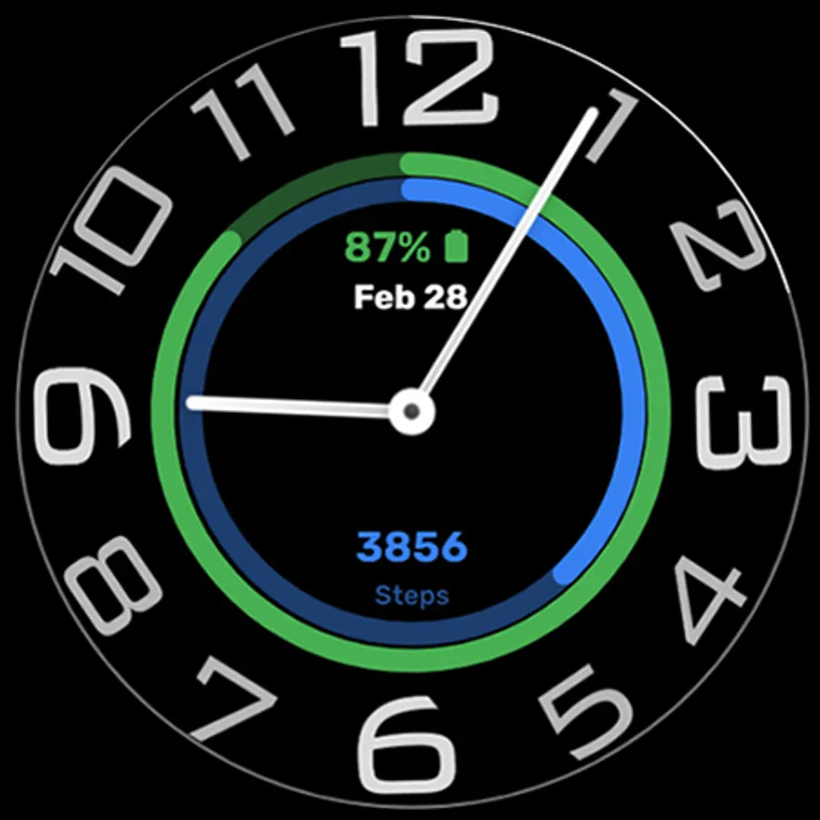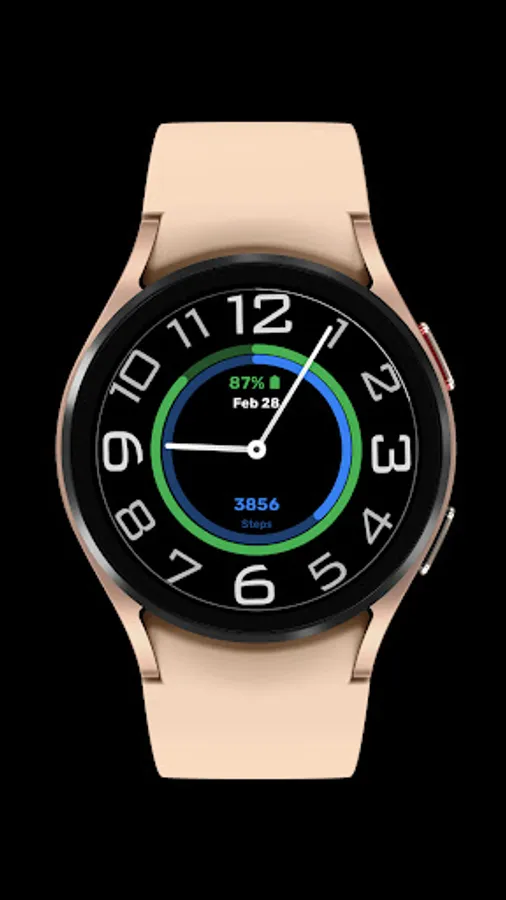 A Unique Minimalistic Analogue Watch Face for your Wear OS Device, with a steps and battery ring style to showcase on your wrist.