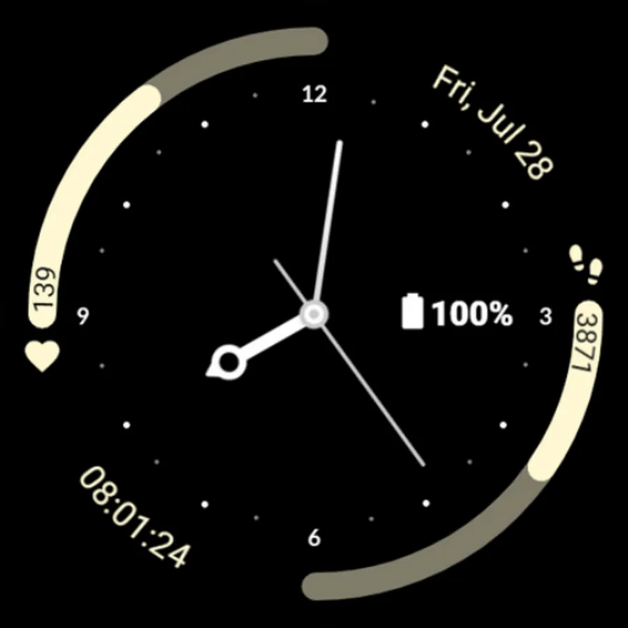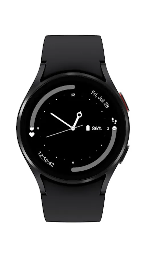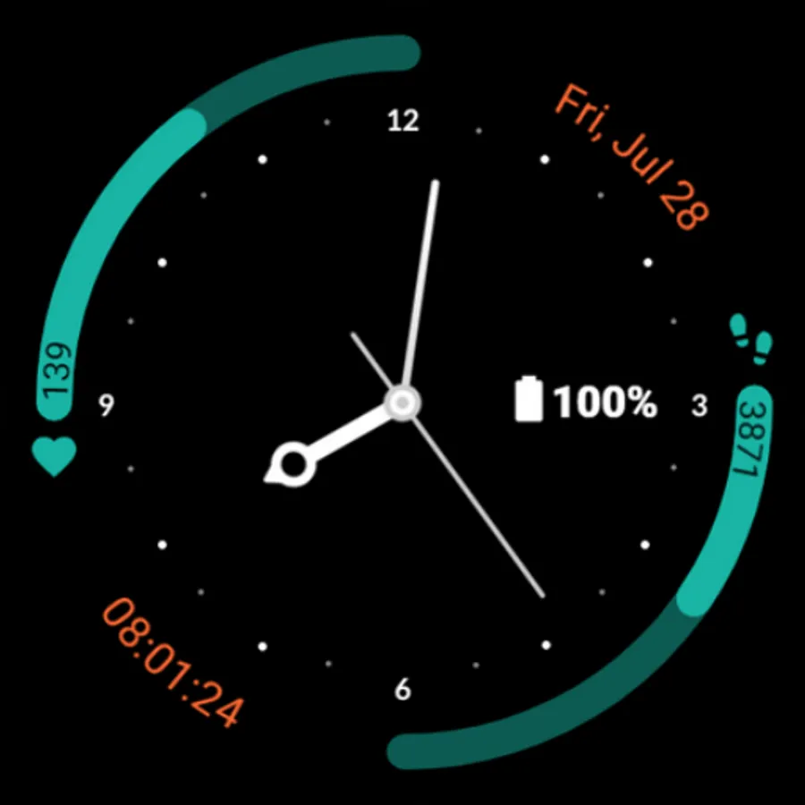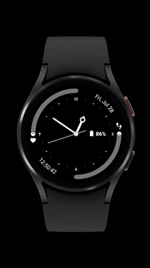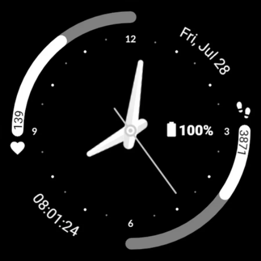 Imagine a watch that stands out for its striking simplicity, while offering vital information at your fingertips. With a completely dark design, this minimalist watch face provides a clean and sharp screen, allowing you to focus on what really matters: your health and wellness data.