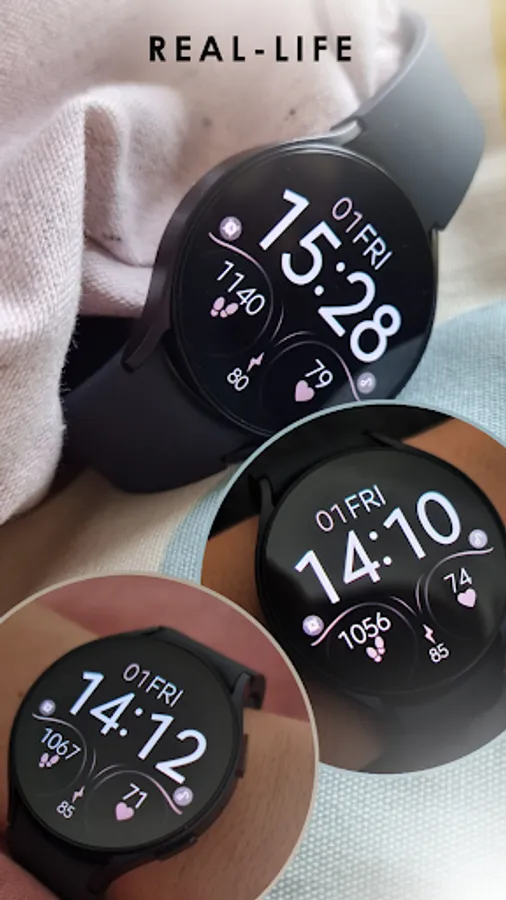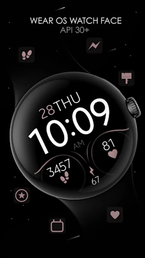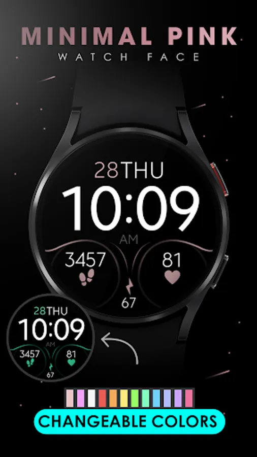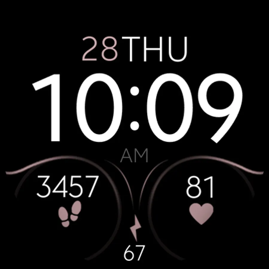 Minimal Pink watch face is compatible with all Wear OS devices API 30+ like Google Pixel Watch, Samsung Galaxy Watch 6, Galaxy Watch 5 etc.