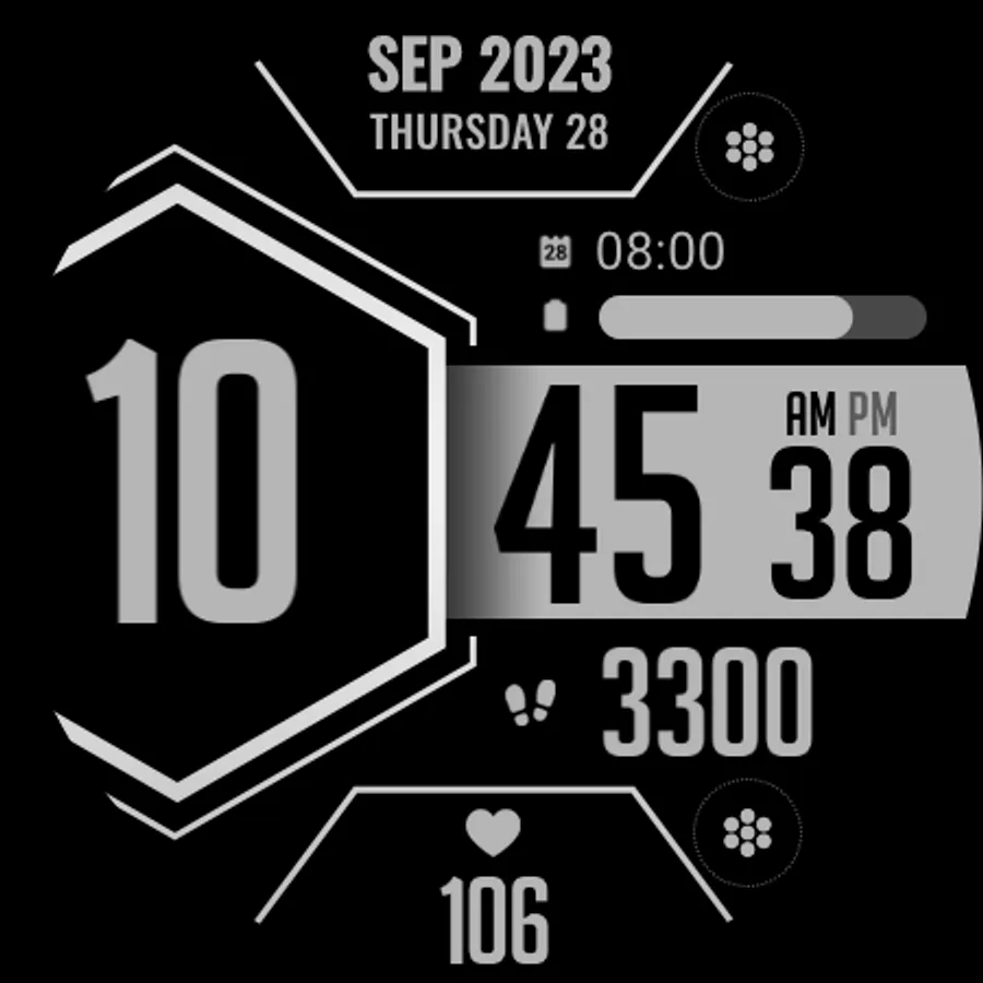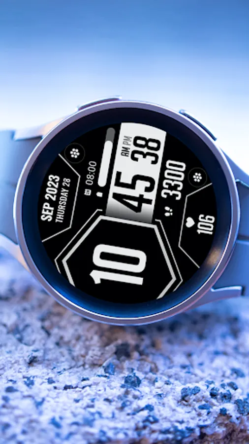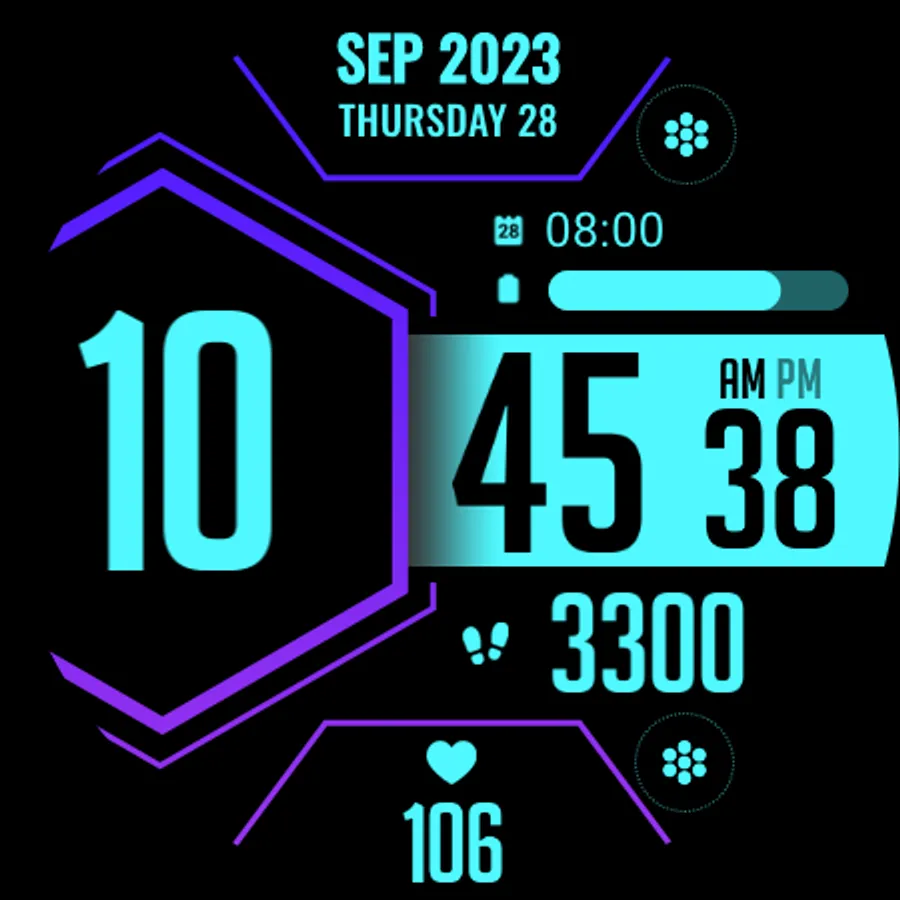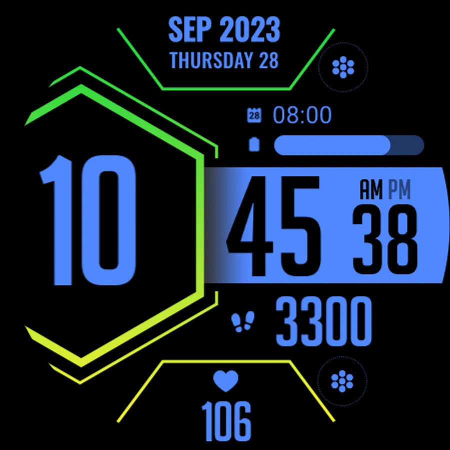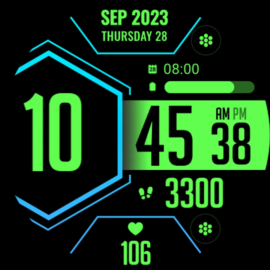 MJ106 is a Future Sport Watch Face for Wear OS with features :