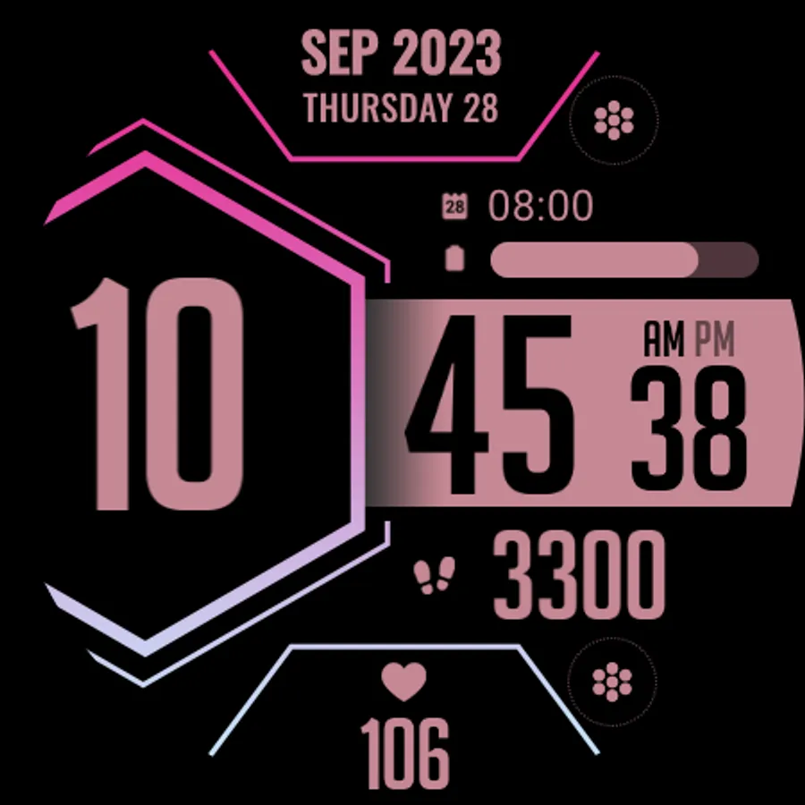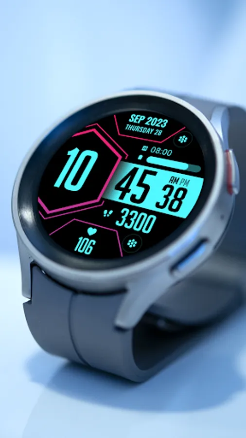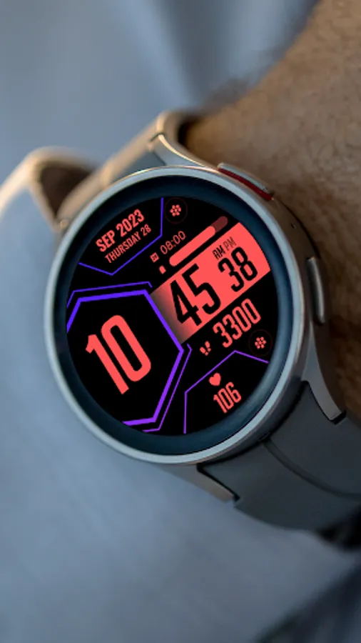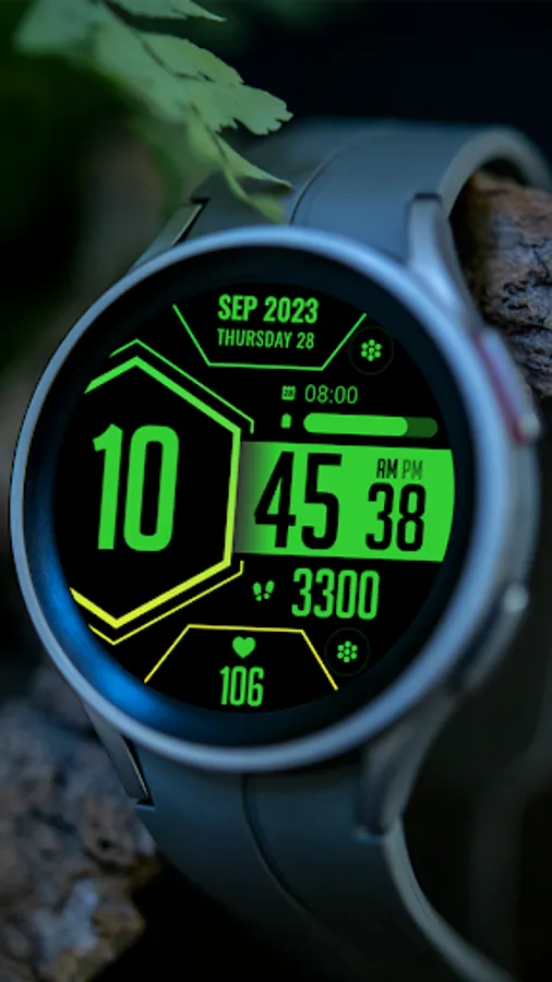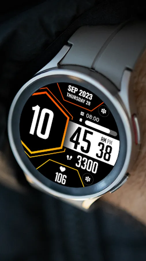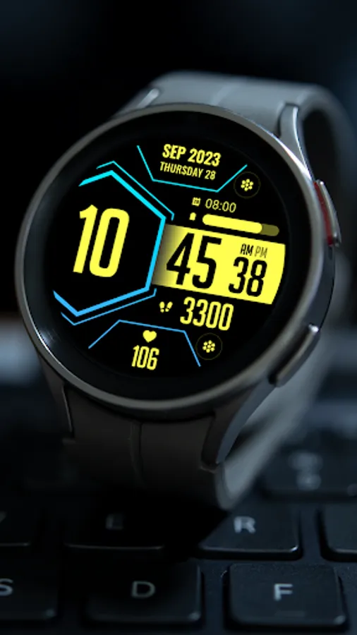MJ106 is a Future Sport Watch Face for Wear OS with features :