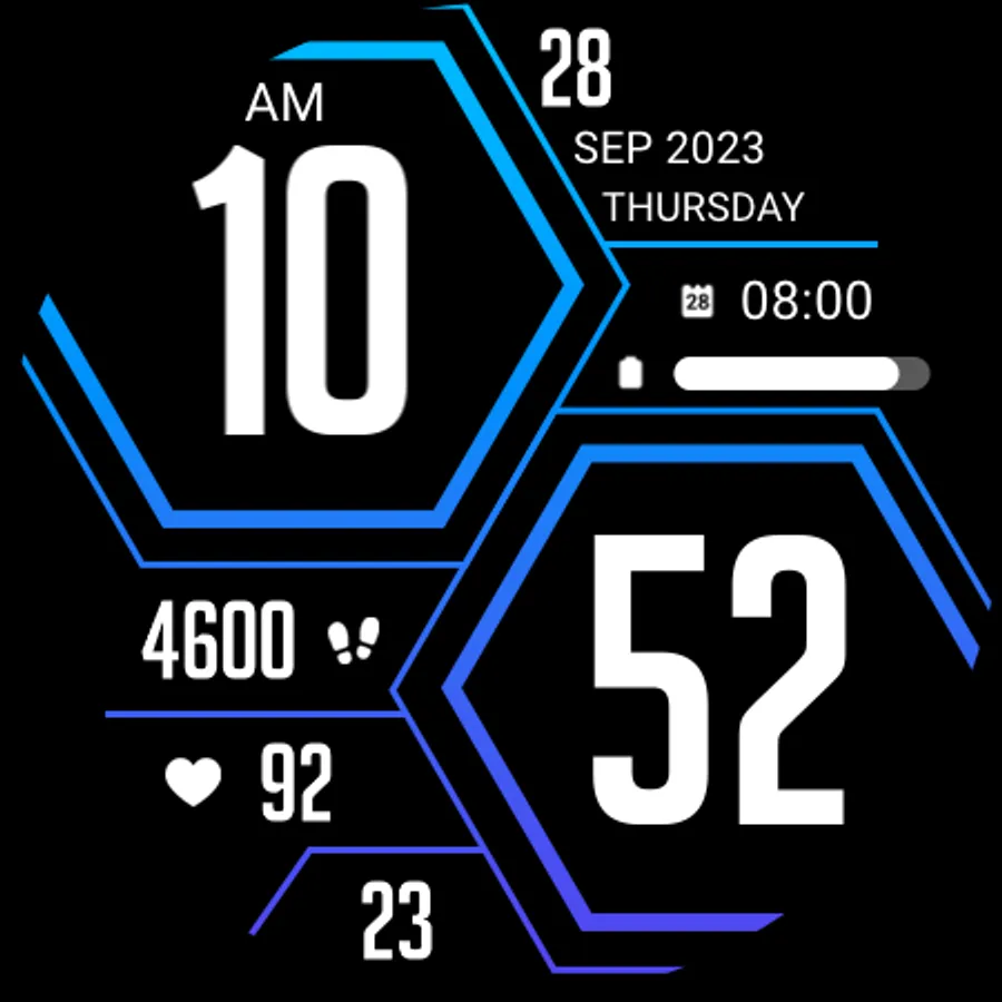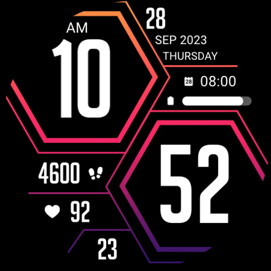 MJ108 HexLines is an Electric Lines Watch Face for Wear OS with features :