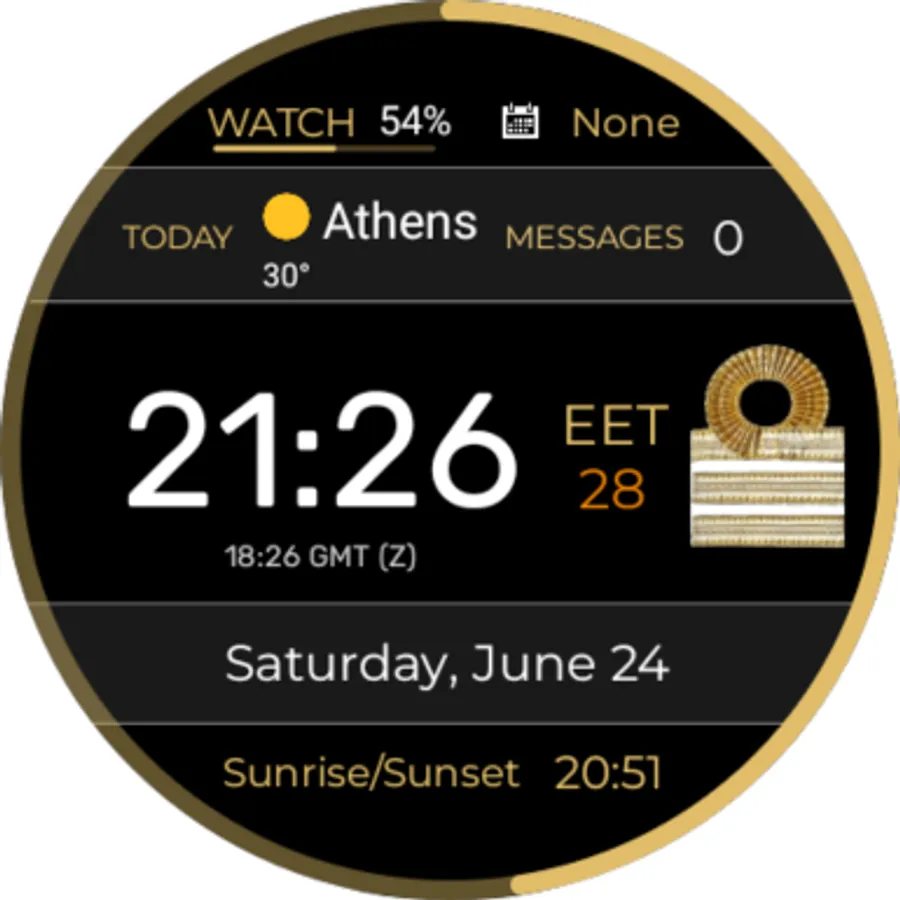 Furthermore, the watch indicates the number of unread messages on your phone. It prominently displays the current day and date and essential information about the sunrise and sunset. This comprehensive timepiece is an all-around watch for any Merchant Navy Officer, offering all the relevant information needed.