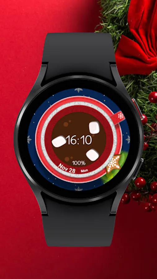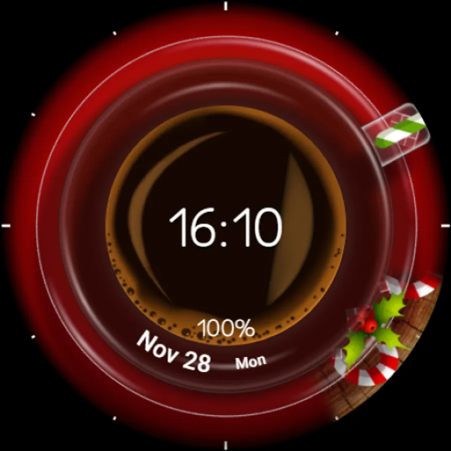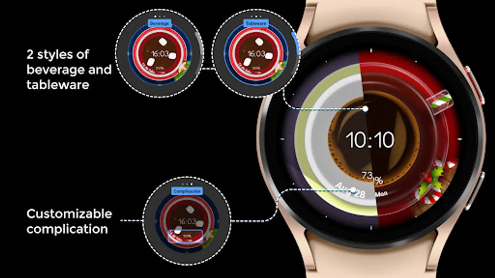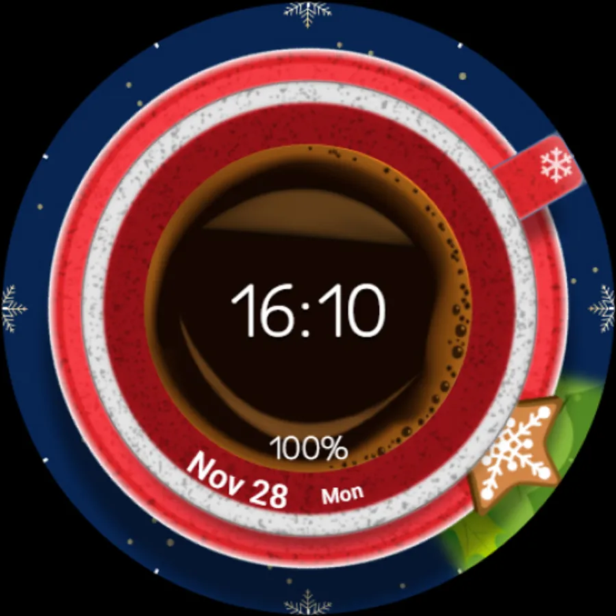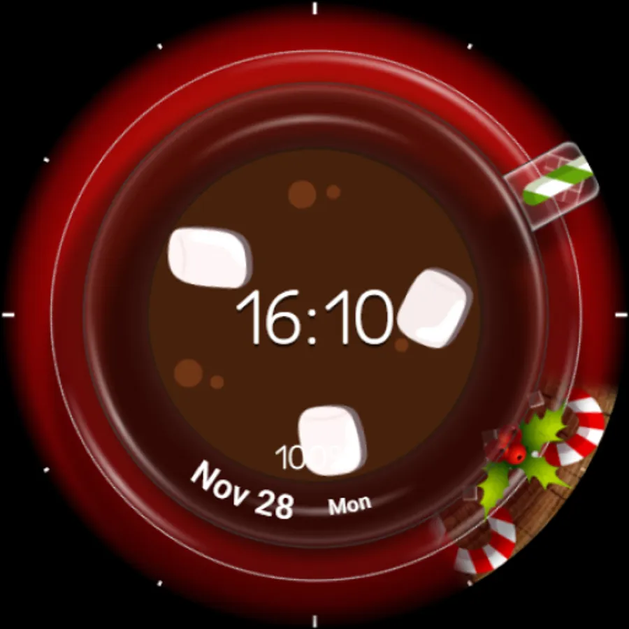 You have the option of chocolate with marshmallows or hot coffee. In addition, choose between a Christmas tea set and a crystal set.