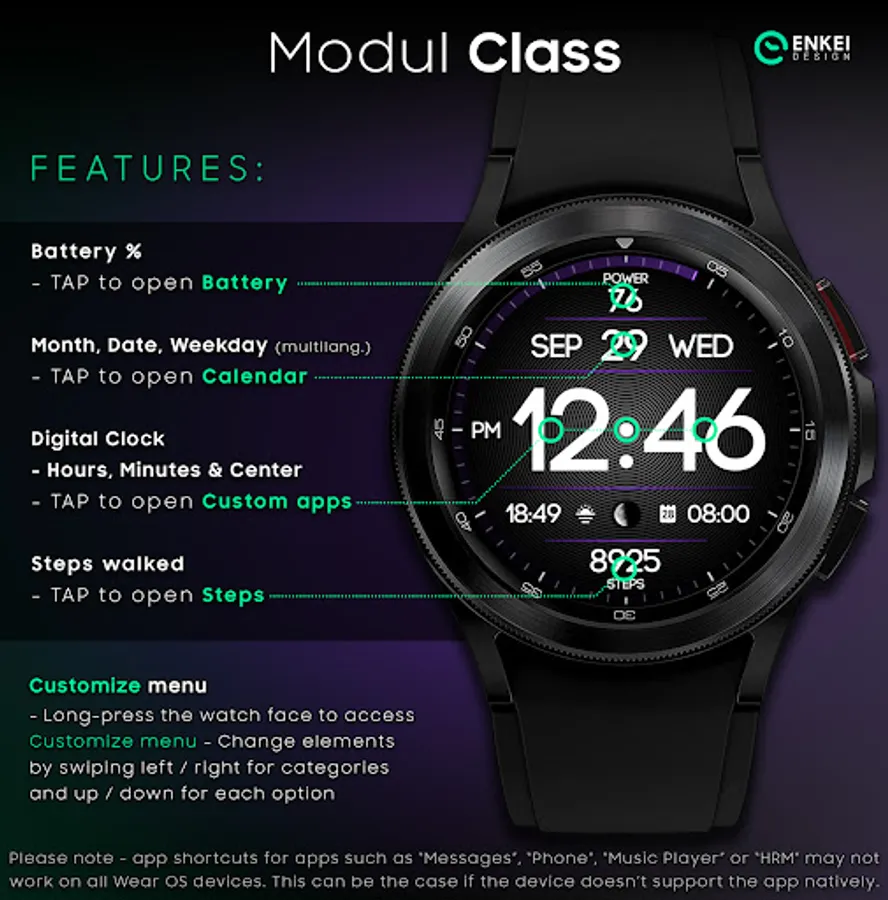 This watch face is compatible with most Wear OS devices, but keep in mind that it will run best and smoothest on newer devices with latest Wear OS software versions.