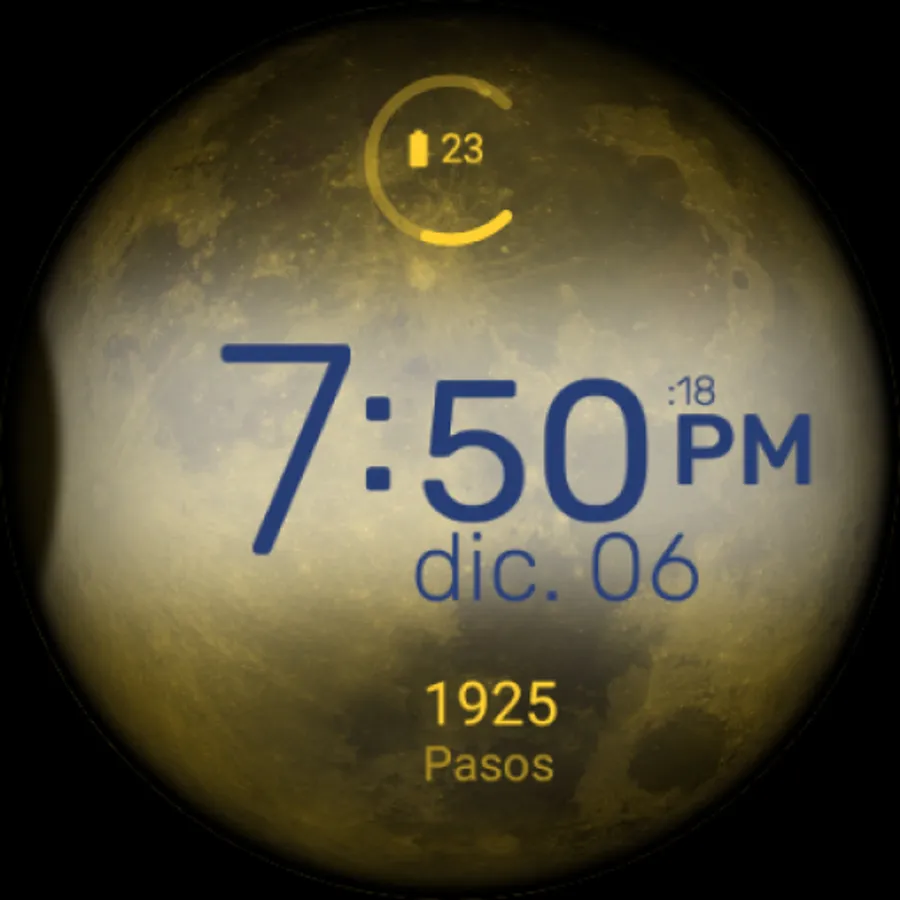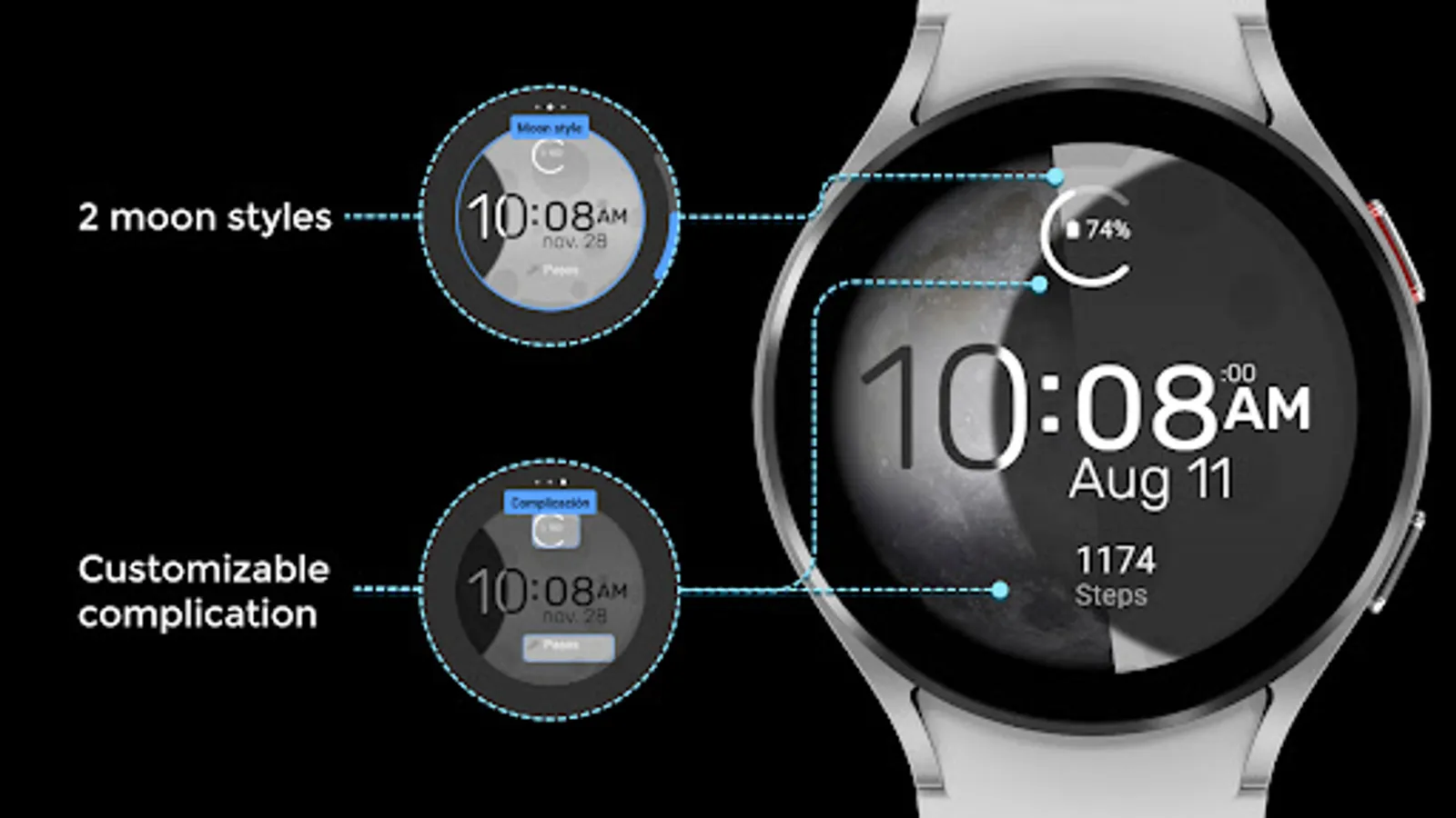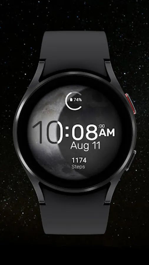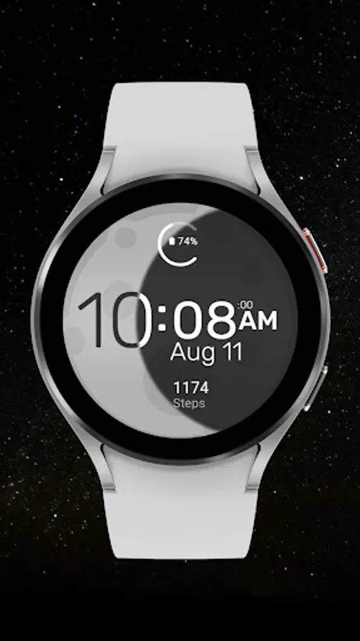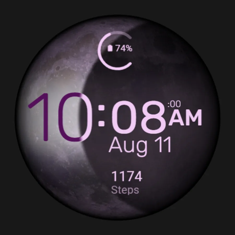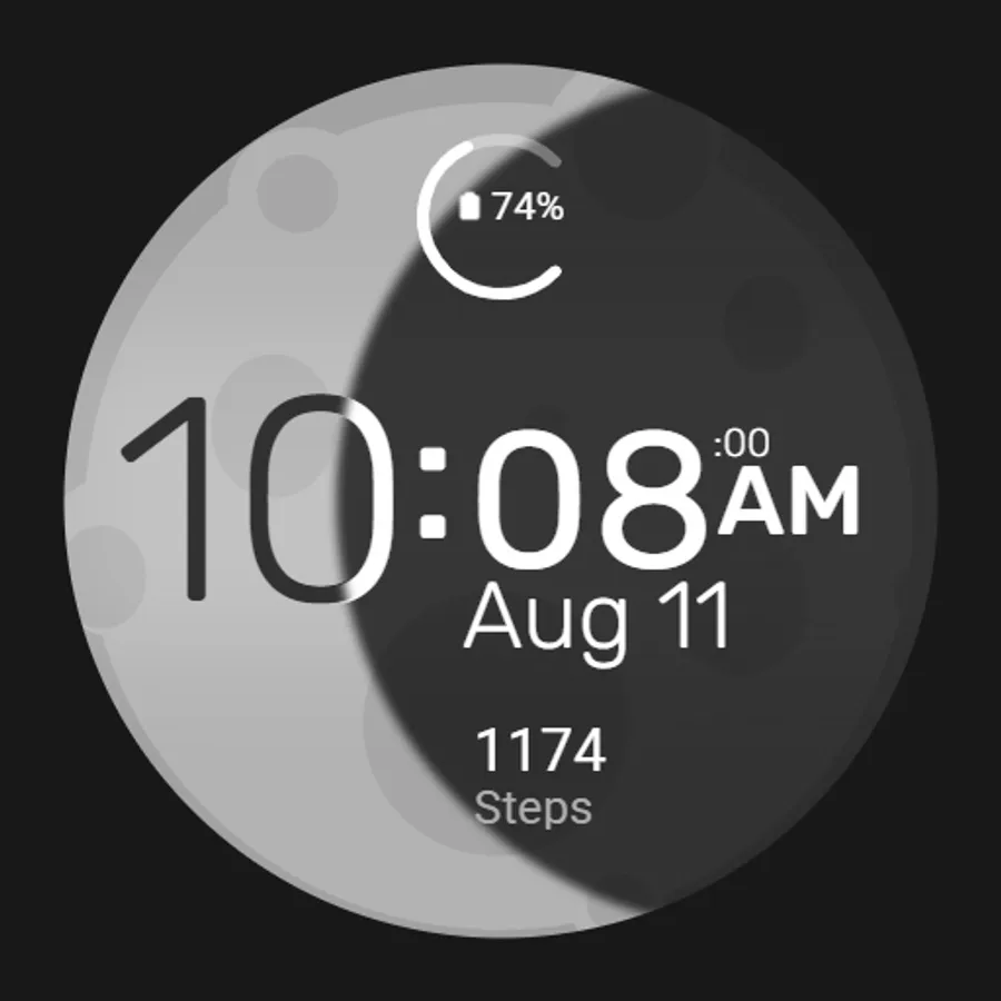This is a simple watch face with a changing background based on the moon phase. It is divided into two styles: photographic and illustration.