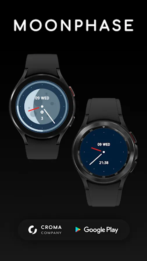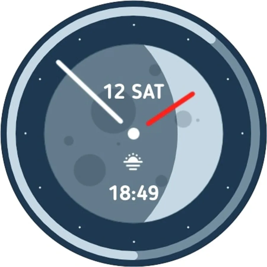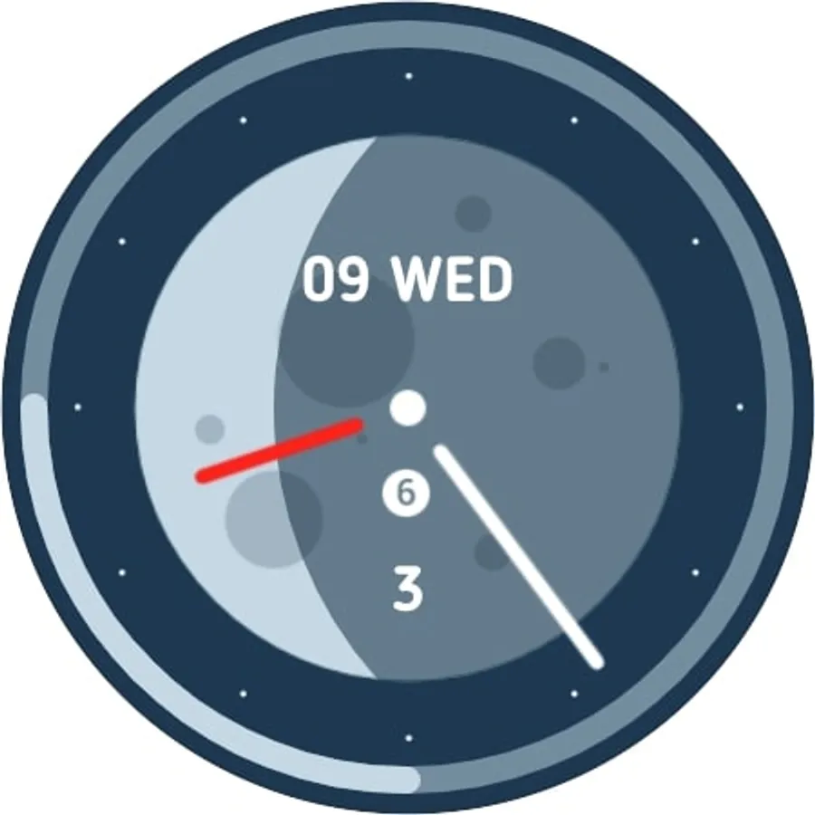 Moonphase is an analogue and elegant watch face. In the background the protagonist is the moon which represents the current moon phase.