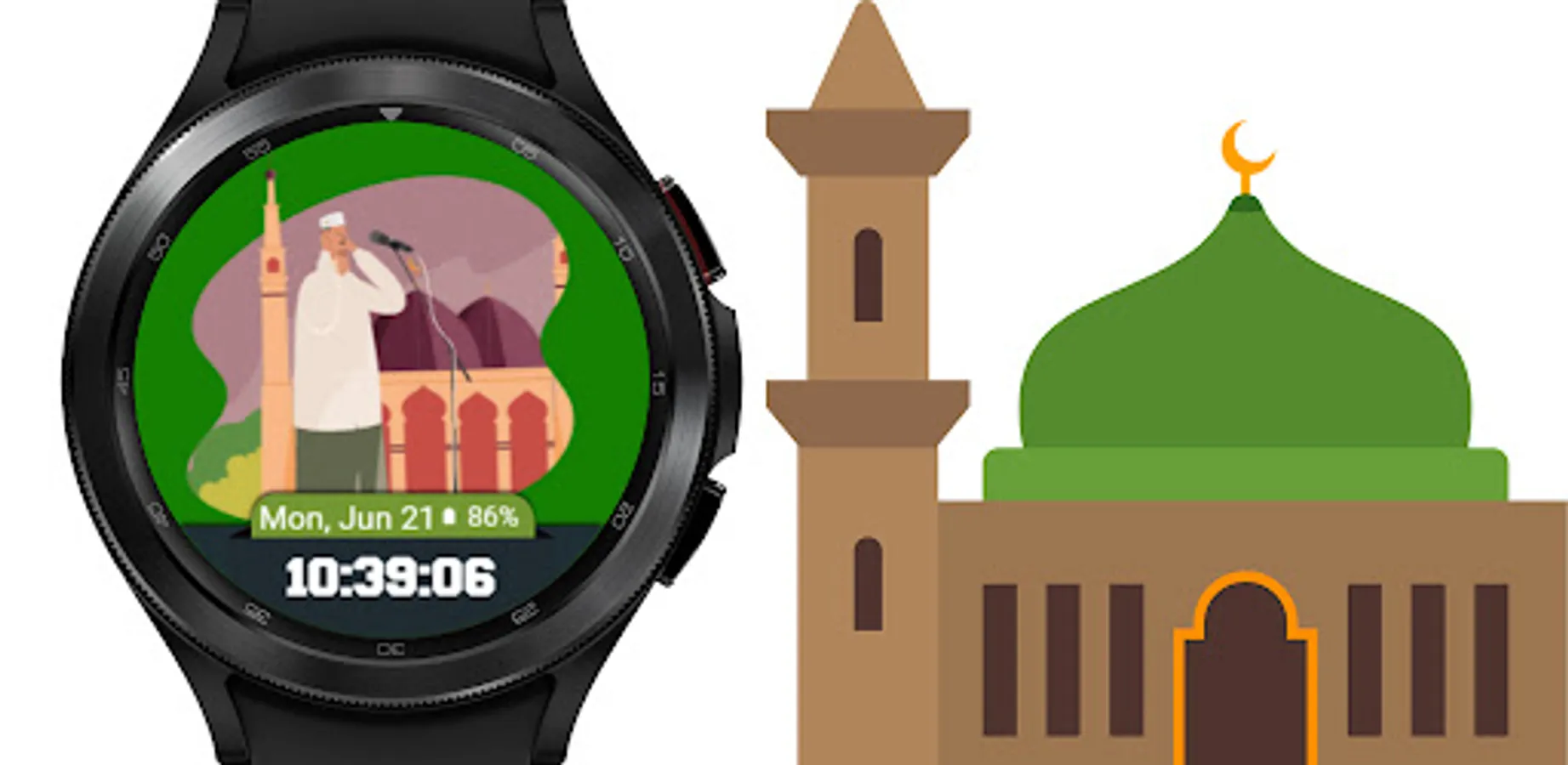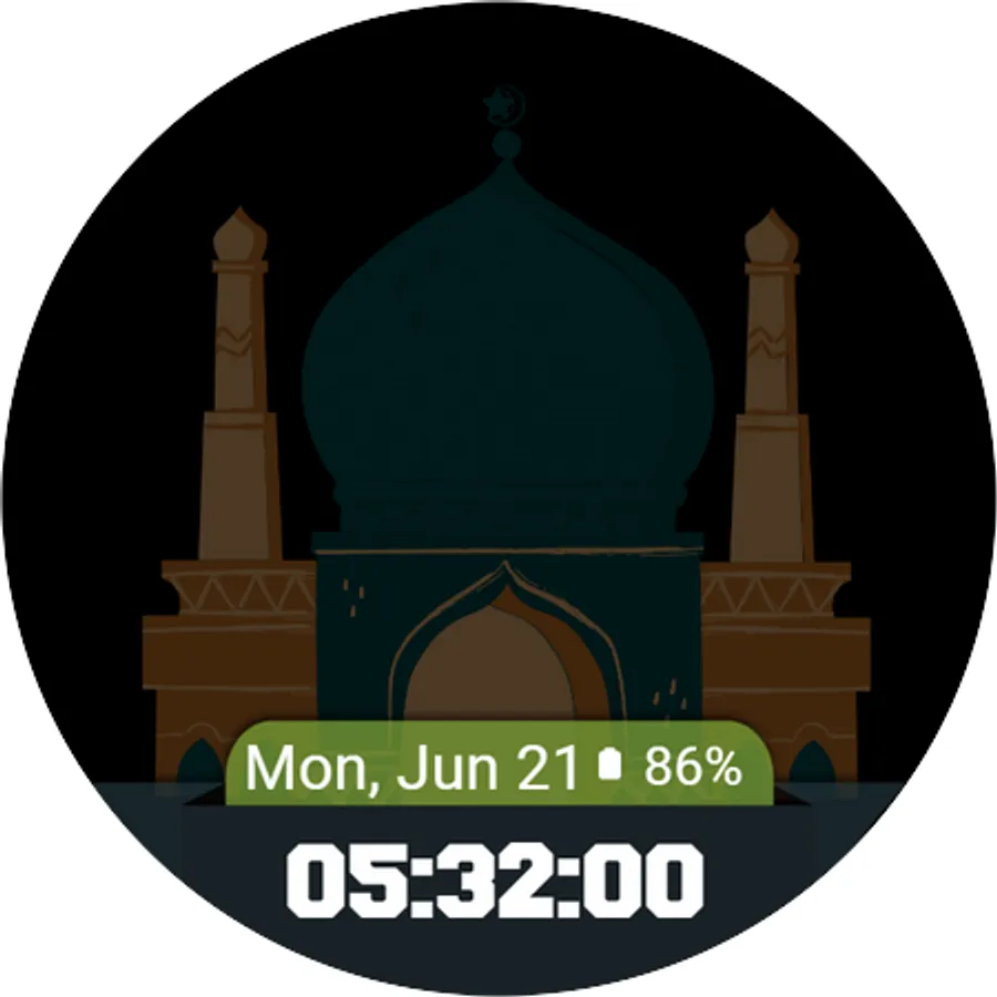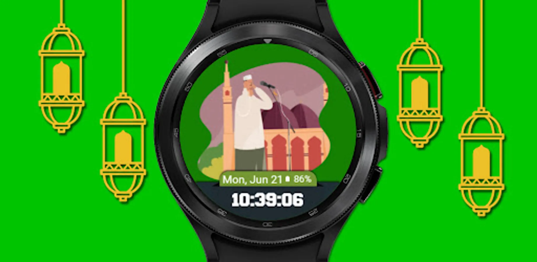 Watch Face wear OS Muslim Azaan Theme Animated Samsung Galaxy Watch Wear from Culturxp, a digital watch face designed to follow your needs and desires.