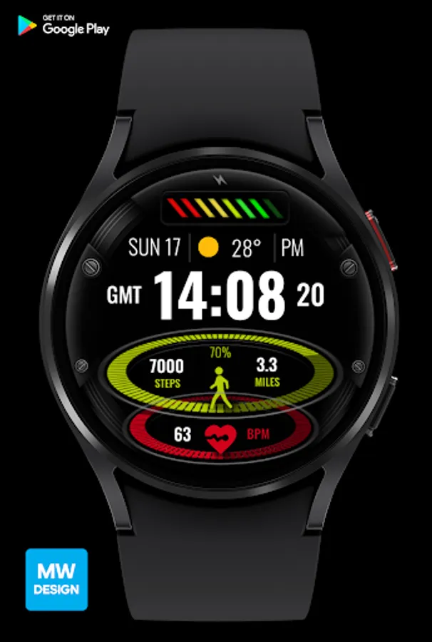 This watch face supports all Wear OS devices with API Level 28+.