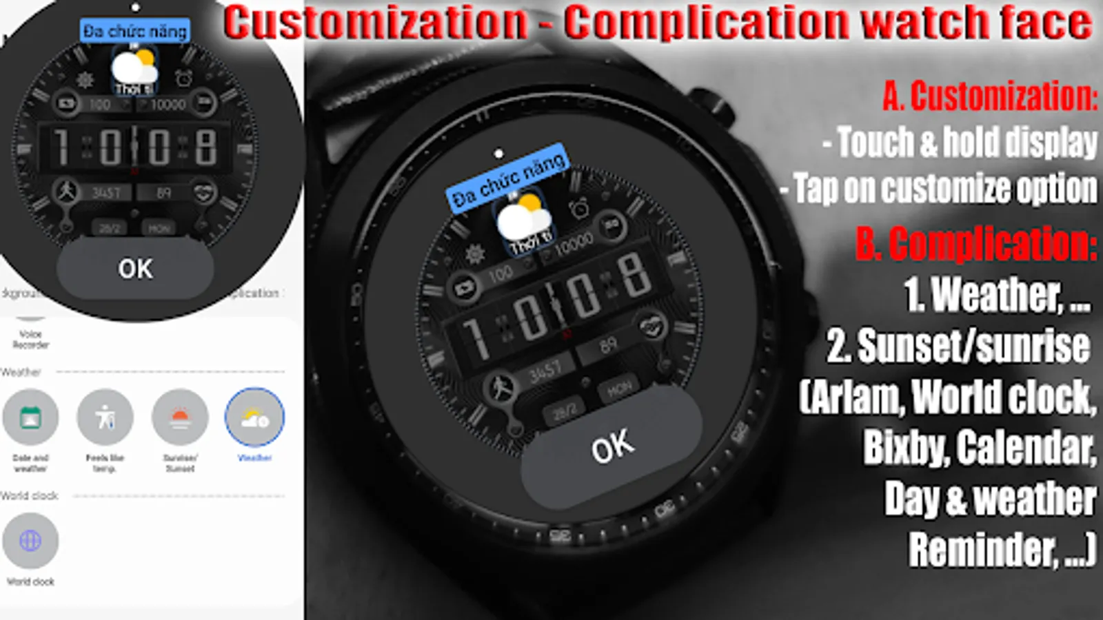 Complication: Weather, Alarm, Worldclock, Sunset & Sunrise, …