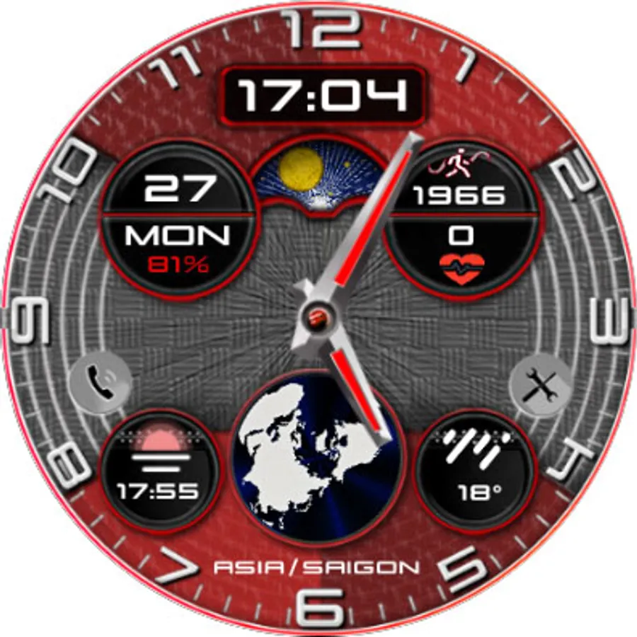 For example, you can select weather, steps, time zone, sunset/sunrise, barometer, next appointment and more.