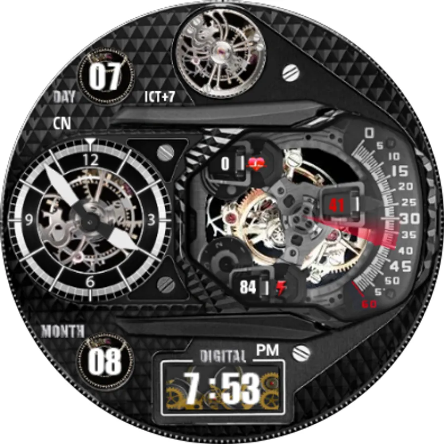 N-SPORT507 is Mechanical Hybird Wearos watch face for Samsung watch 5 pro, watch 4 classic & Google pixel watch with Wearos devices!
