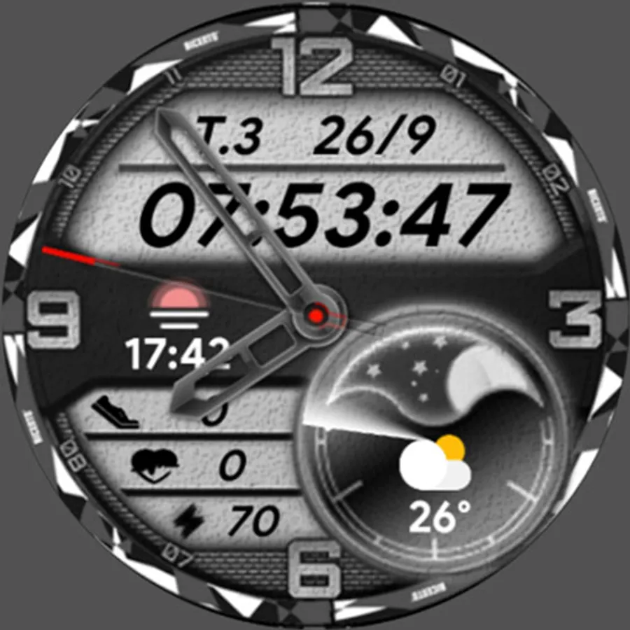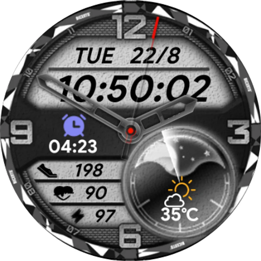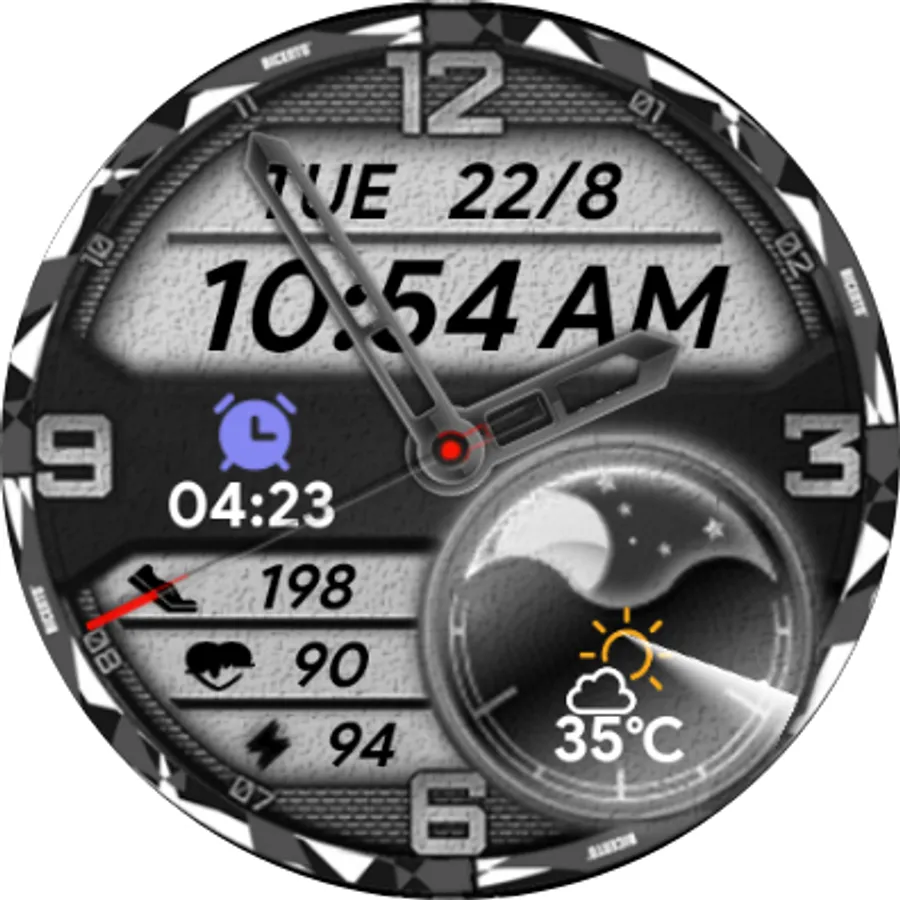 Various complications can be easily customized to help you display information about weather, humidity, Uv index etc ... just to suit your needs.