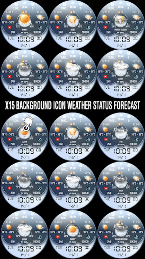 (1: CLEAR, 2:CLOUDY, 3 :FOG, 4:HEAVY_RAIN, 5:HEAVY_SNOW, 6 :RAIN, 7 : SNOW, 8:SUNNY, 9:THUNDERSTORM, 10:SLEET, 11:LIGHT_SNOW, 12:LIGHT_RAIN, 13:MIST, 14:PARTLY_CLOUDY, 15:WINDY)