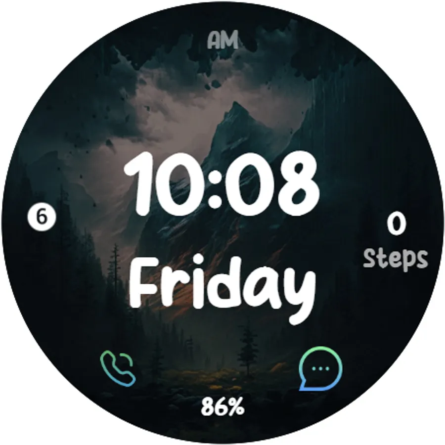 With a breathtaking mountain vista, step tracking capabilities, and phone and message notifications, our watch face is designed to help you stay connected to the world around you.