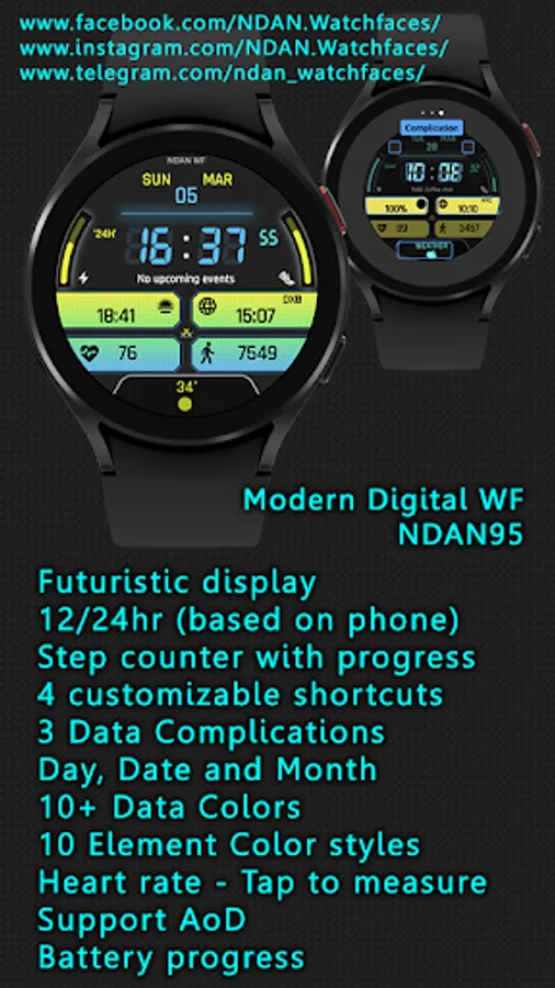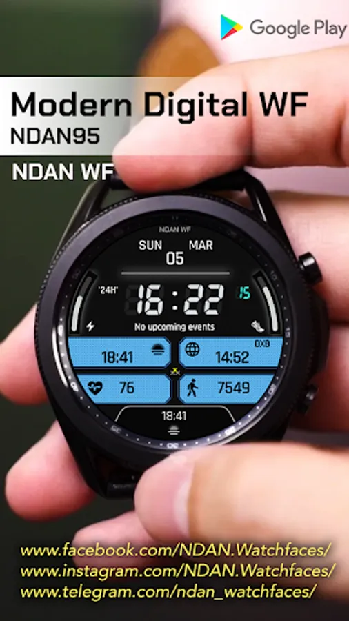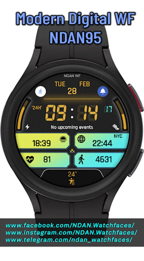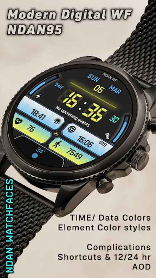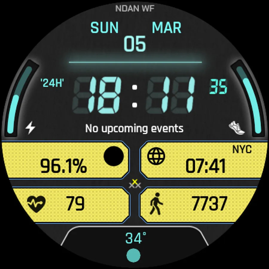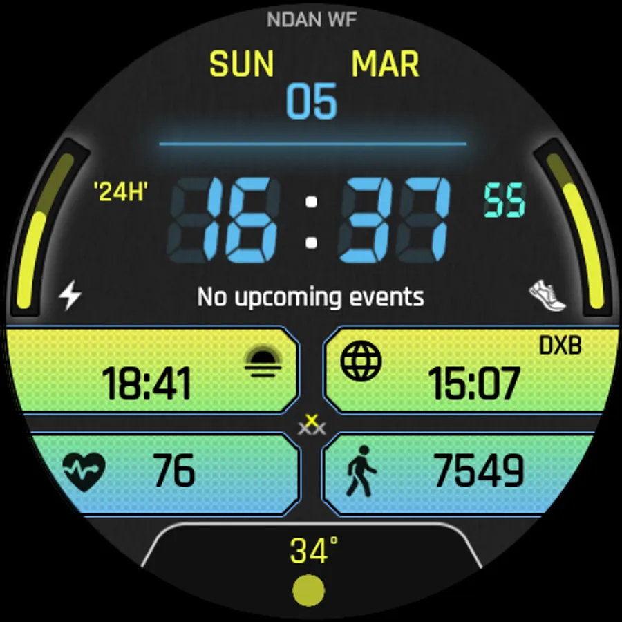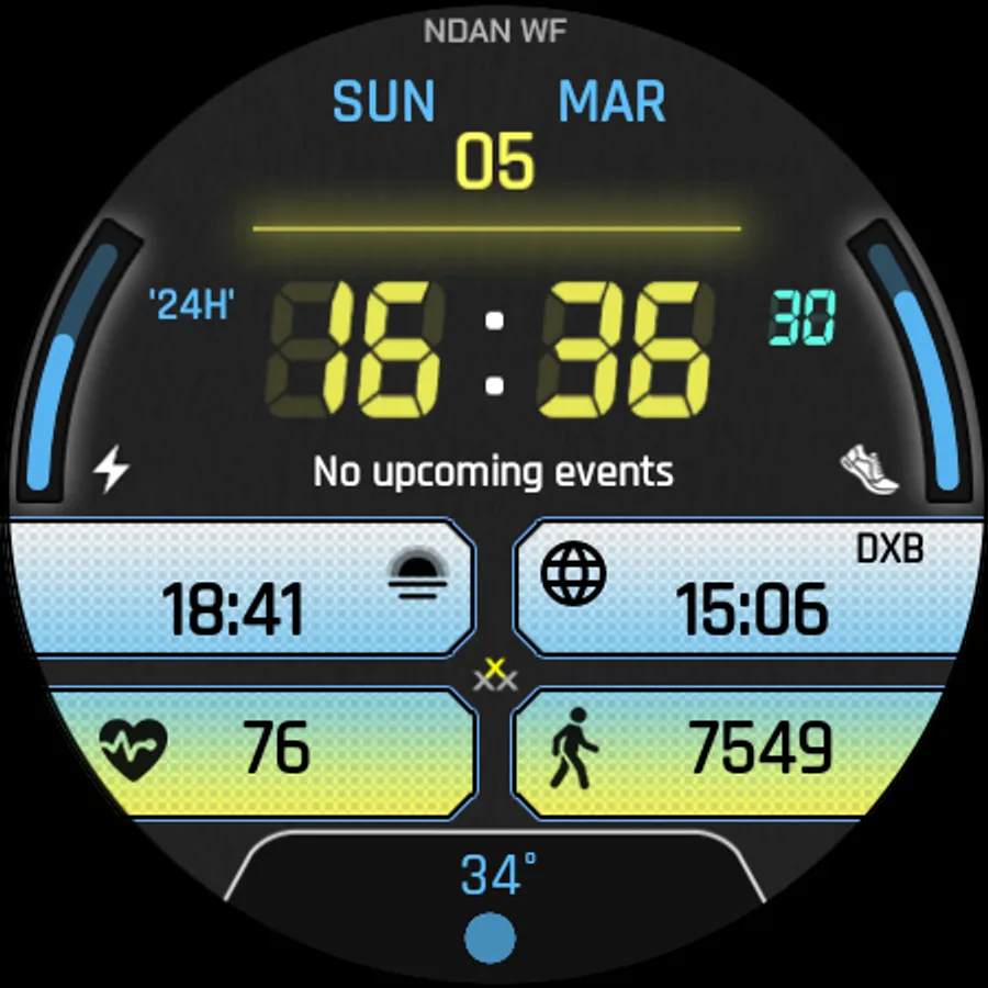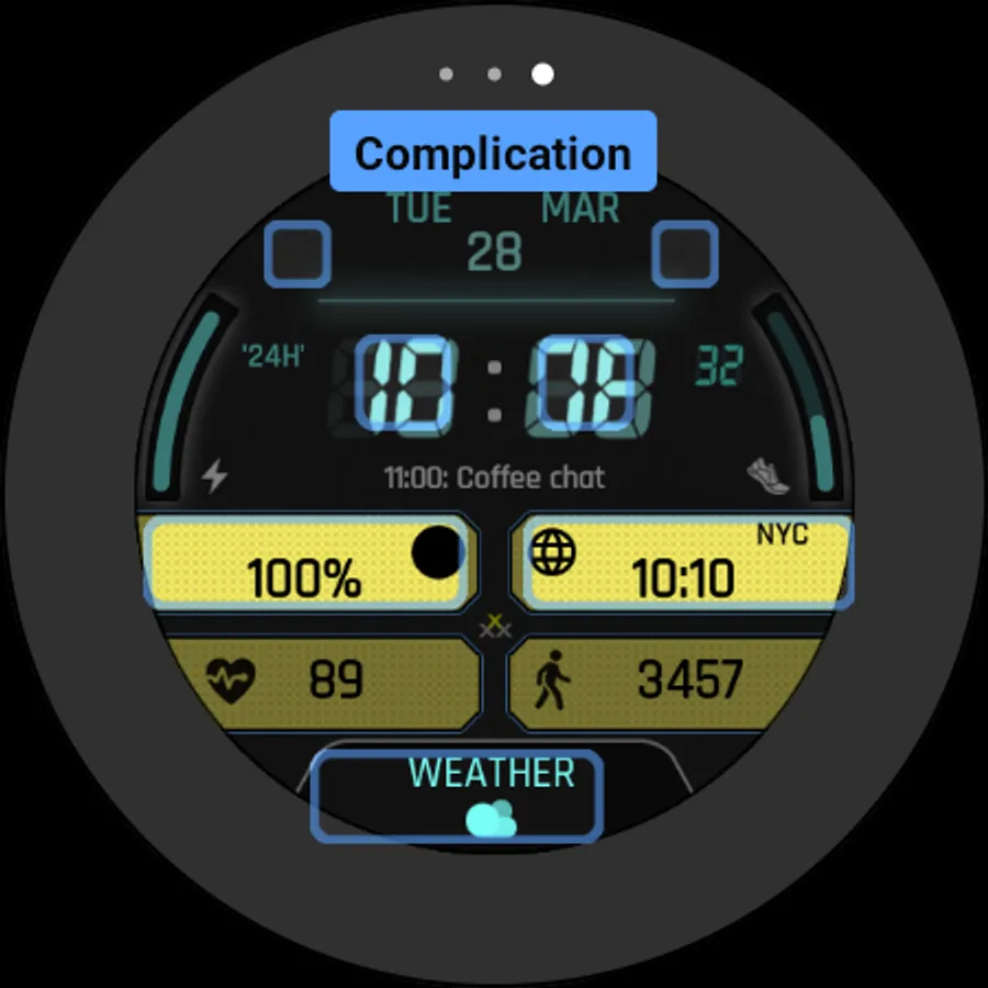 - 3 editable short complications for data such as Barometer, Next event, Weather etc.