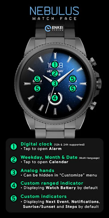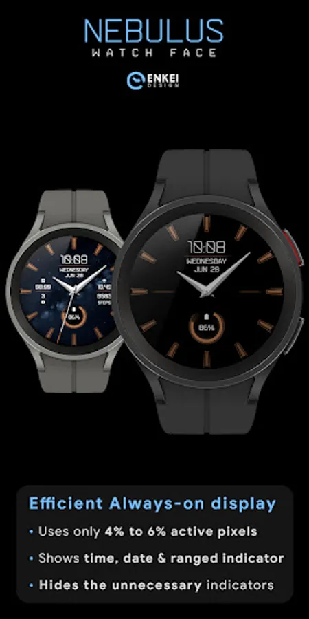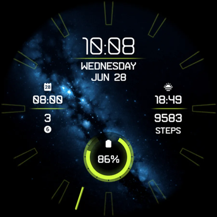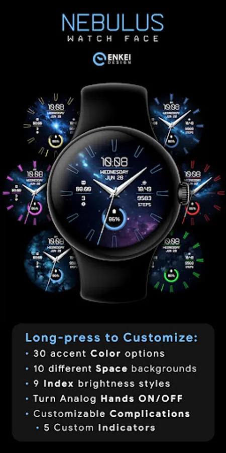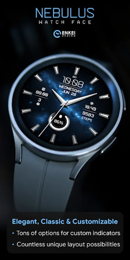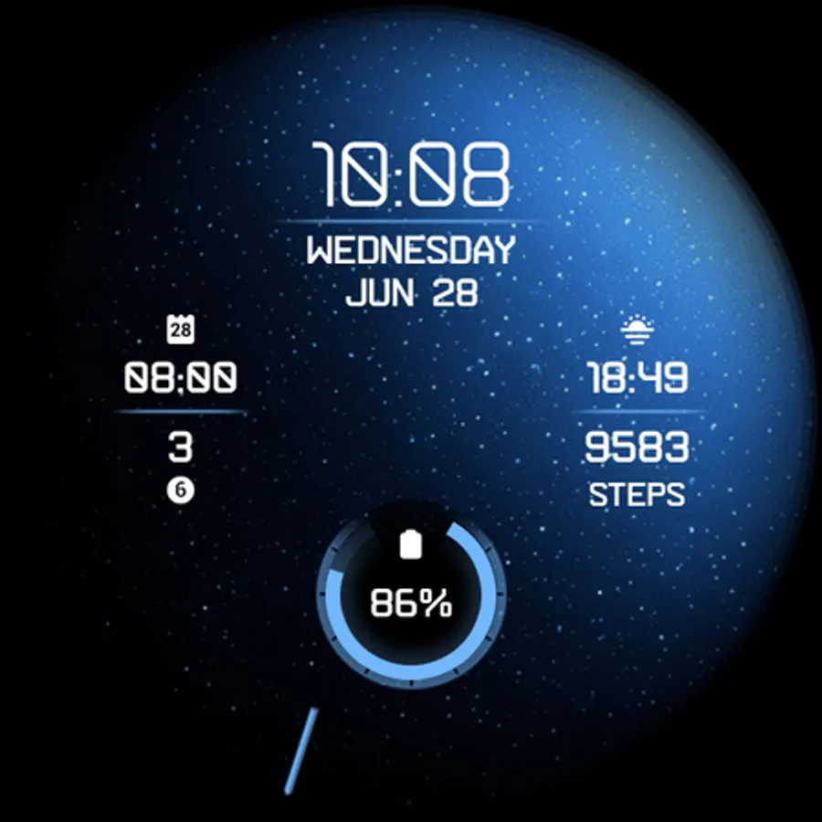 Nebulus is an elegant, classic space-themed watch face with tons of amazing customization options!