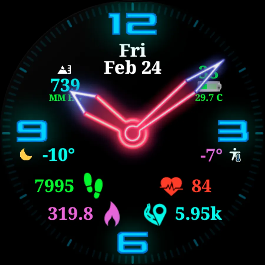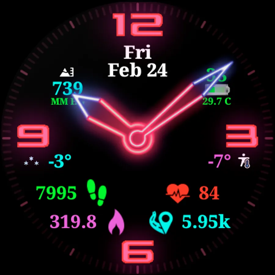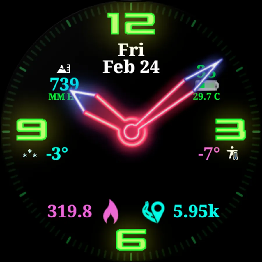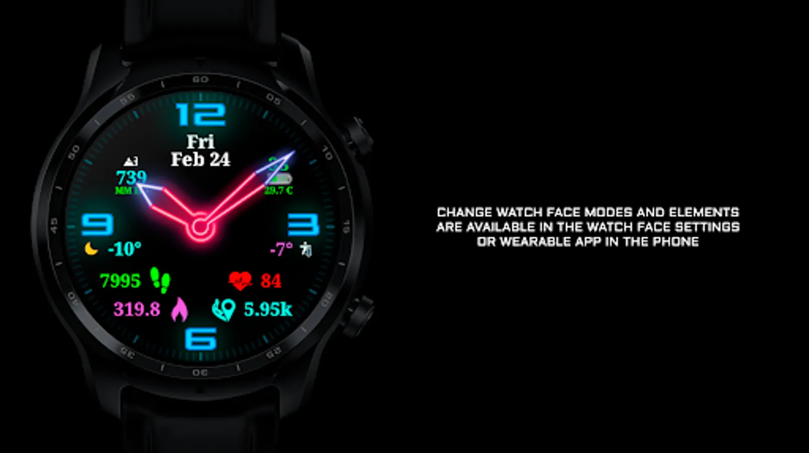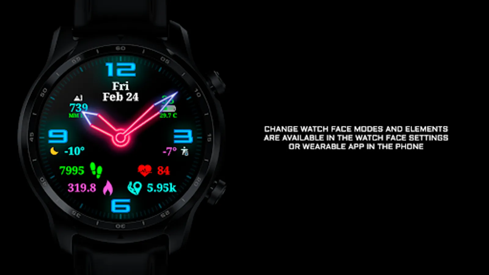Some information and graphics elements are disabled by default(you can turn it on in the watch face settings).