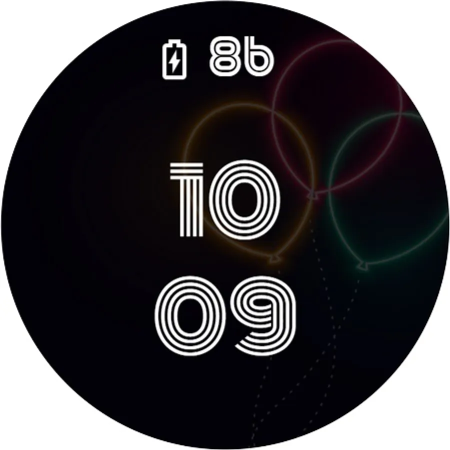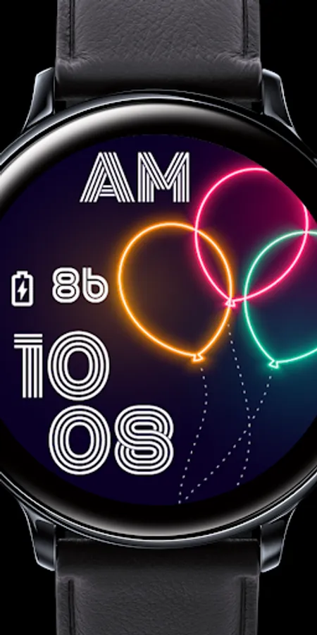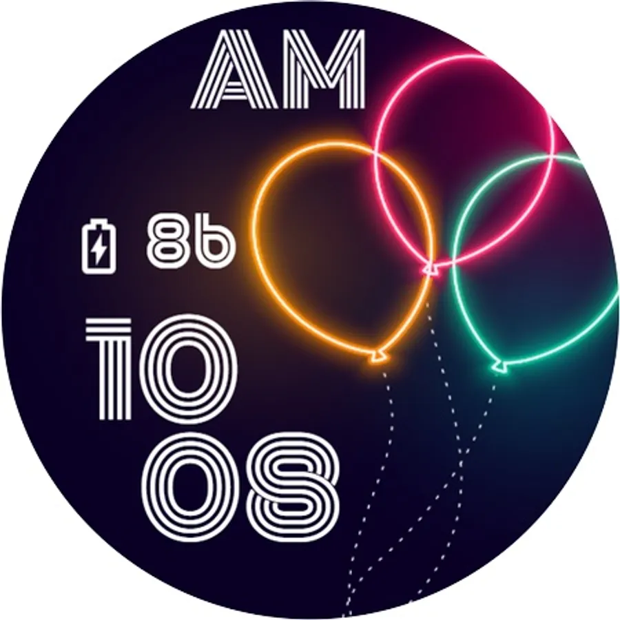 It is a clean and simple watch face inspired by balloons and neon colors and clean aesthetics in mind.