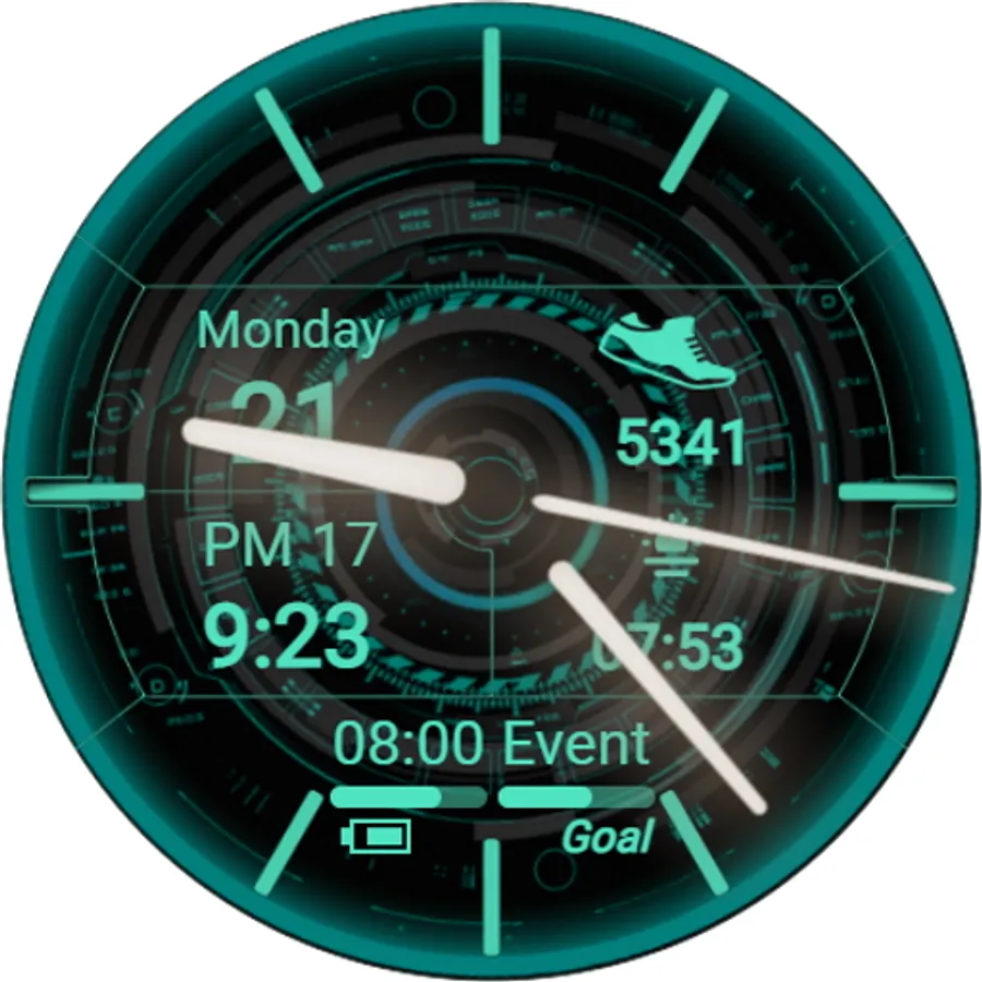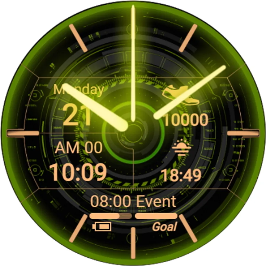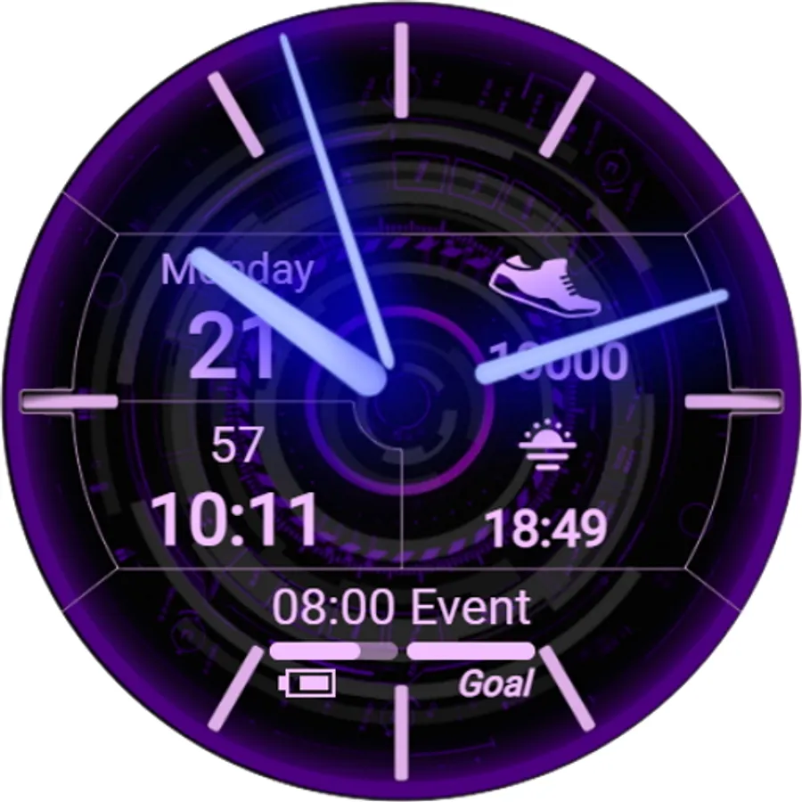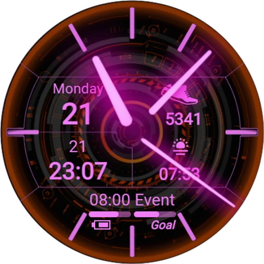 Watch analog face in neon style with glow! You can choose your favorite color.