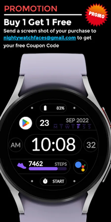 Send a screenshot of your purchase to nightywatchfaces@gmail.com to get your free promo code