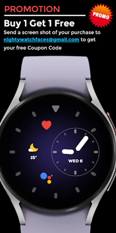Send a screenshot of your purchase to nightywatchfaces@gmail.com to get your free promo code