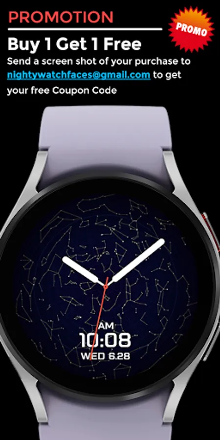 Send a screenshot of your purchase to nightywatchfaces@gmail.com to get your free promo code