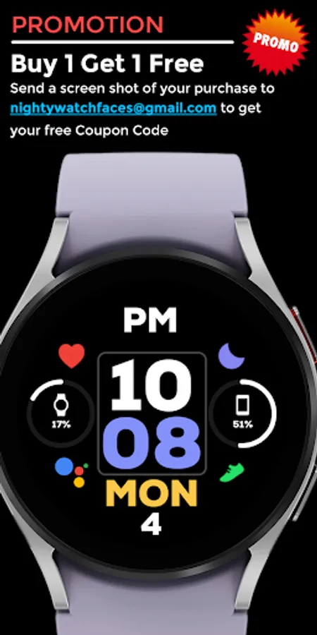 Send a screenshot of your purchase to nightywatchfaces@gmail.com to get your free promo code