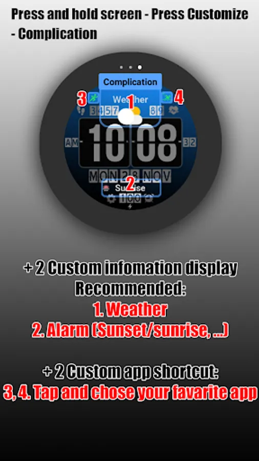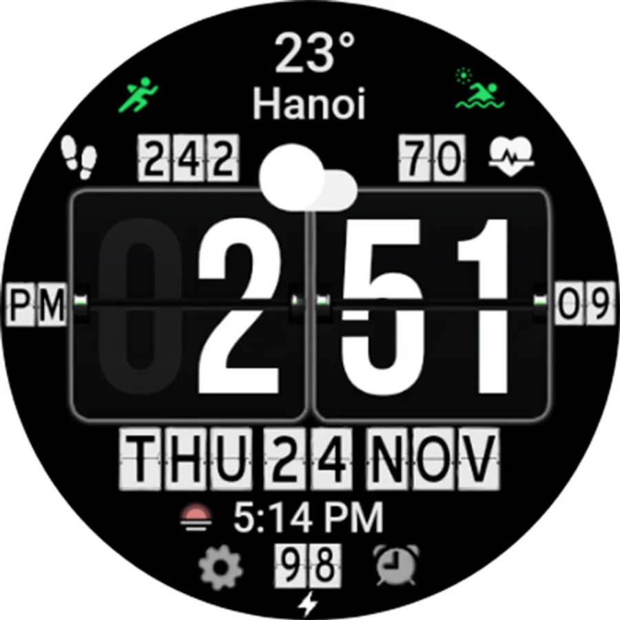 + 2 custom app shortcuts: set your favorite app, and then on watchface tap to open your app)