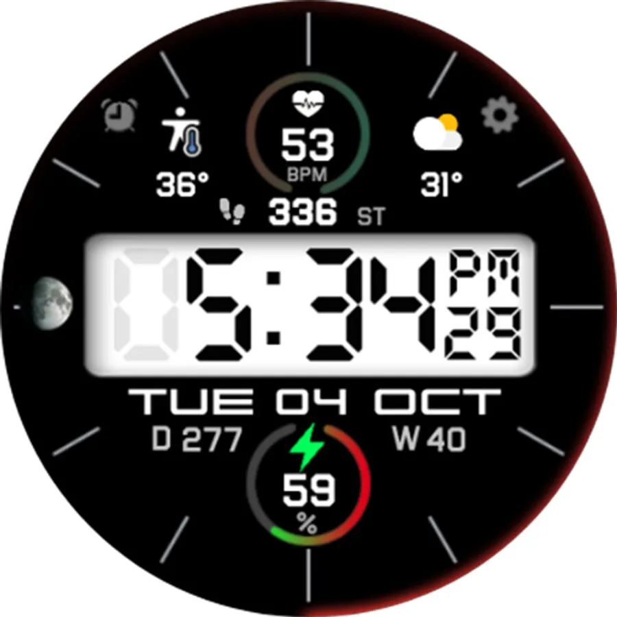 - Digital clock: 12H/24H (changes according to the time format on the phone connected to the watch)