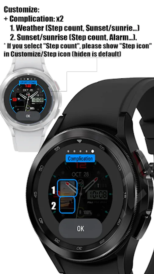 * If you select "Step count", please show "Step icon" in Customize/Step icon (hide is default)