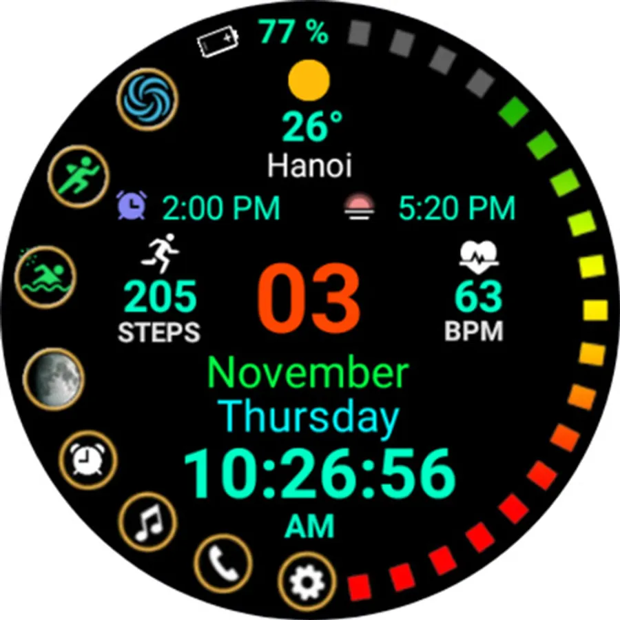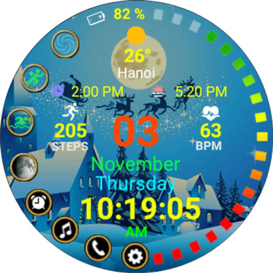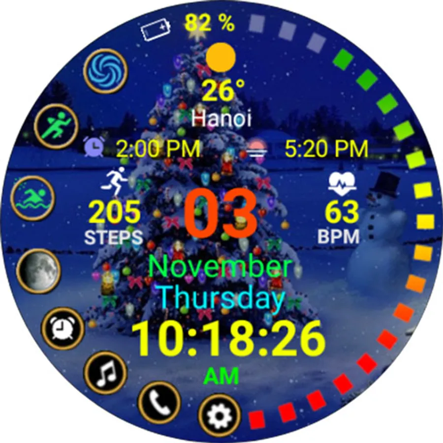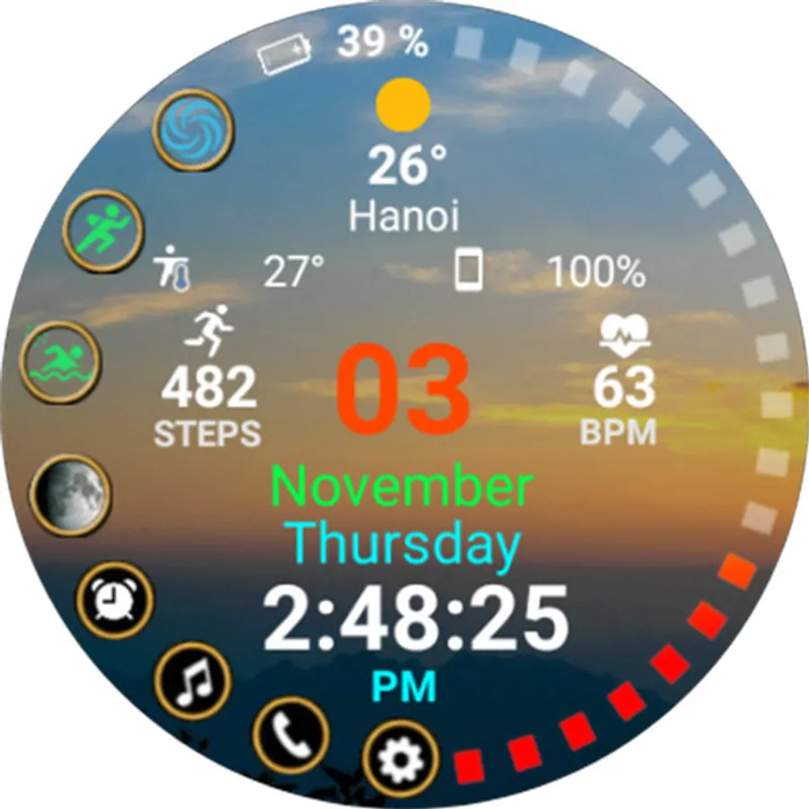 - Digital clock: 12H/24H (changes according to the time format on the phone connected to the watch)