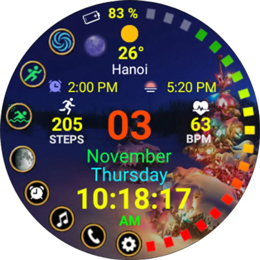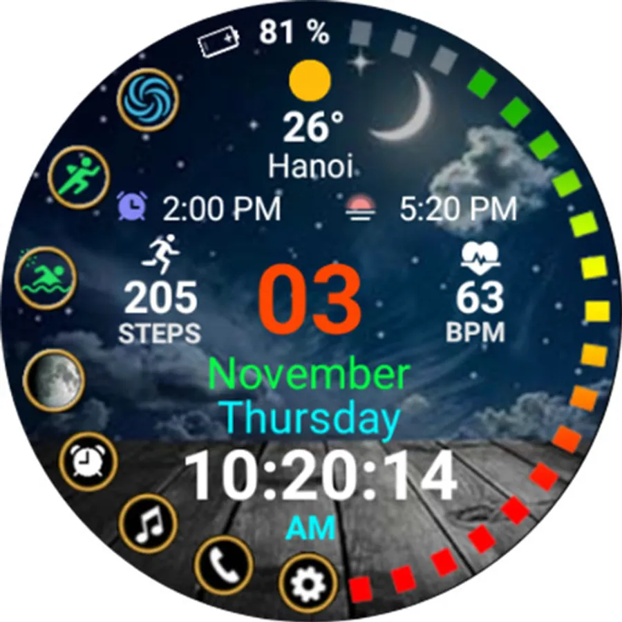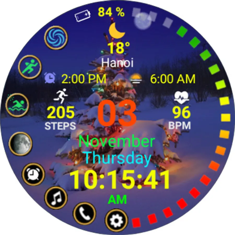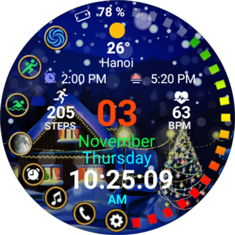 - Digital clock: 12H/24H (changes according to the time format on the phone connected to the watch)