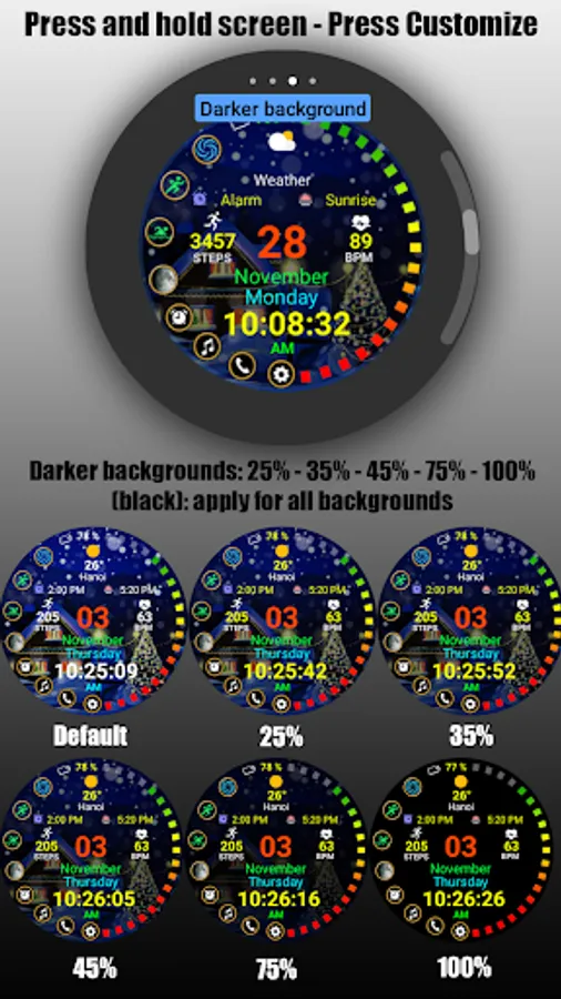 - Darker backgrounds: x6 (default, 25%, 35%, 45%, 75%, 100%-black)