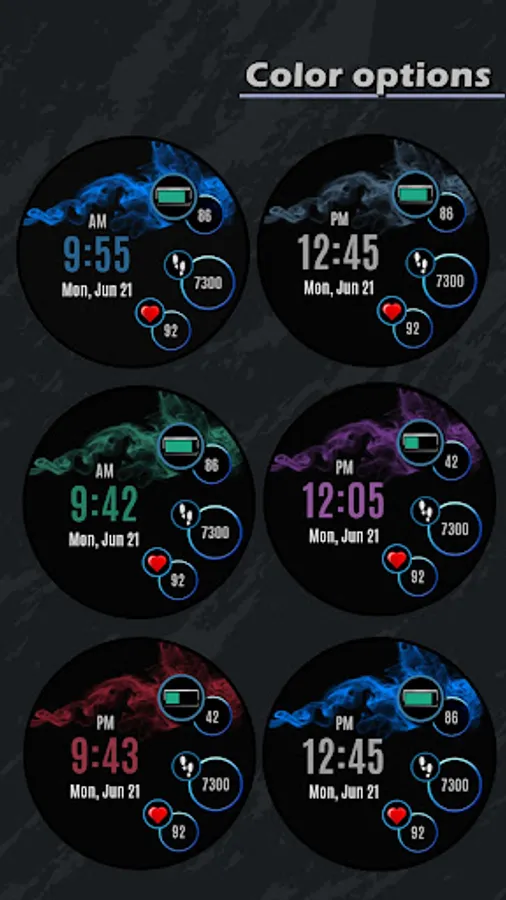 • Time color options x5 (long tap to customize)
