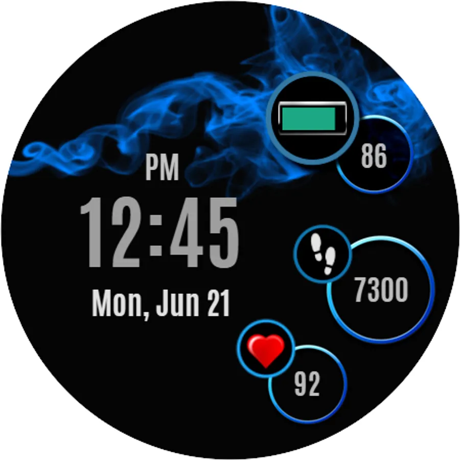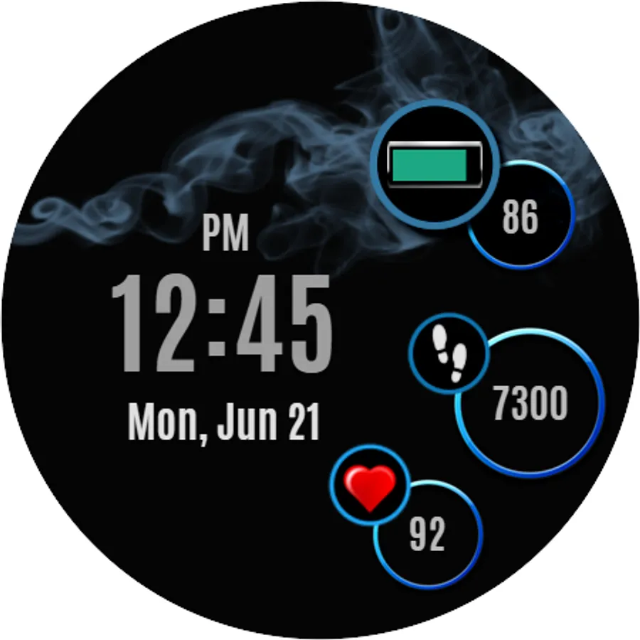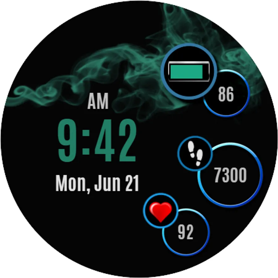 Smart and simple watch face design with health data and ambient mode.