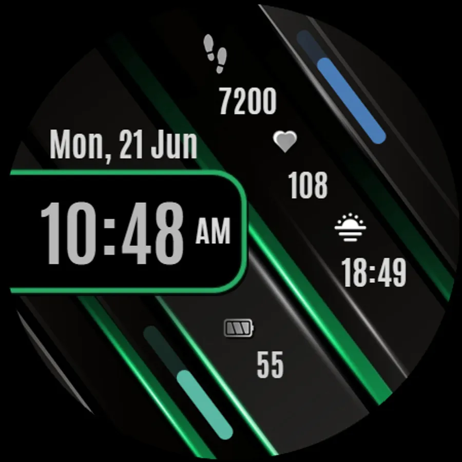 • Heart rate (10 minutes interval or tap on icon to take manual measurement)