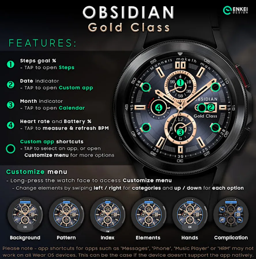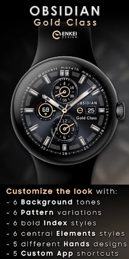 Bold, classic & highly customizable analogue watch face - OBSIDIAN Gold Class !