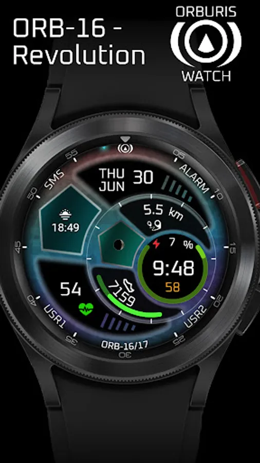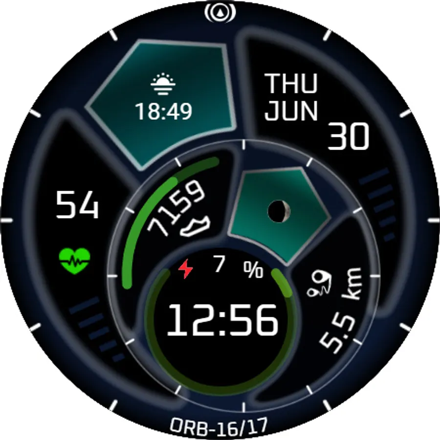 ORB-16 Revolution is a high density hybrid watch face using three concentric discs which describe an epicyclic motion around the face and each other every 24 hours.