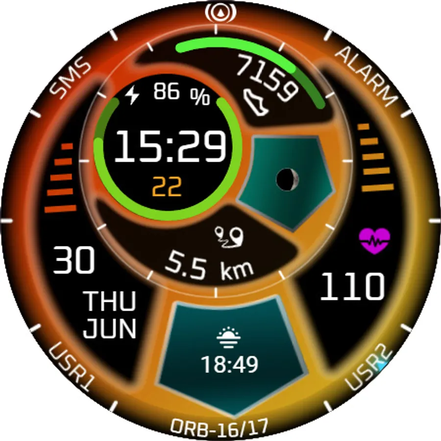 - The crescent shaped segments contain heart rate* and date info respectively.
