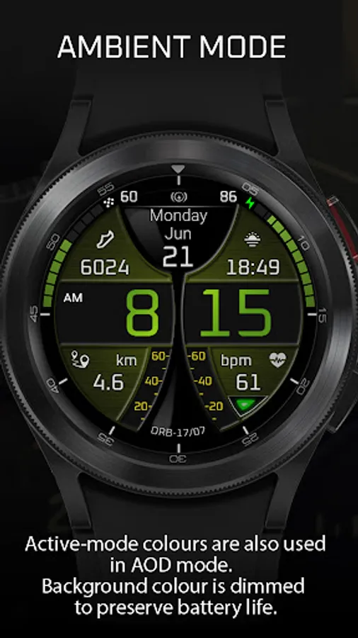 - Currently selected active colours are displayed on the AOD face, suitably dimmed