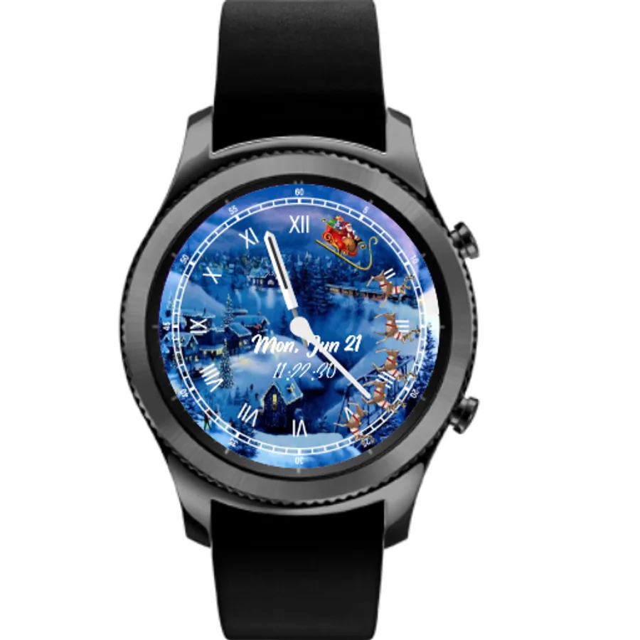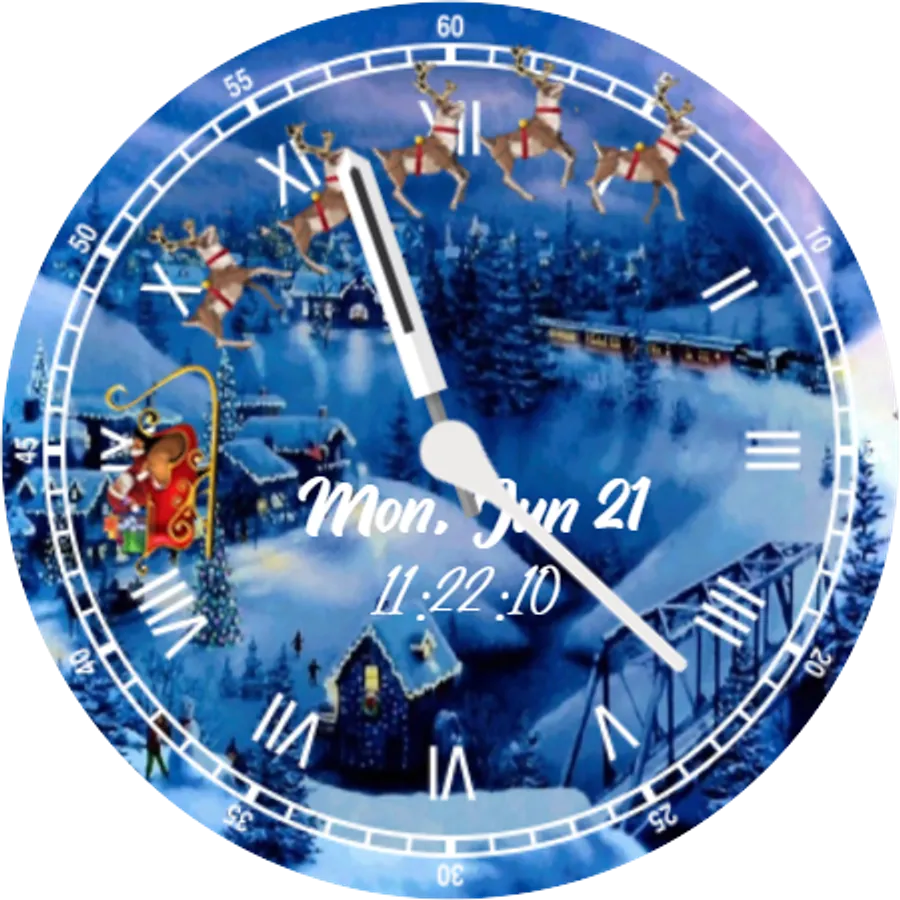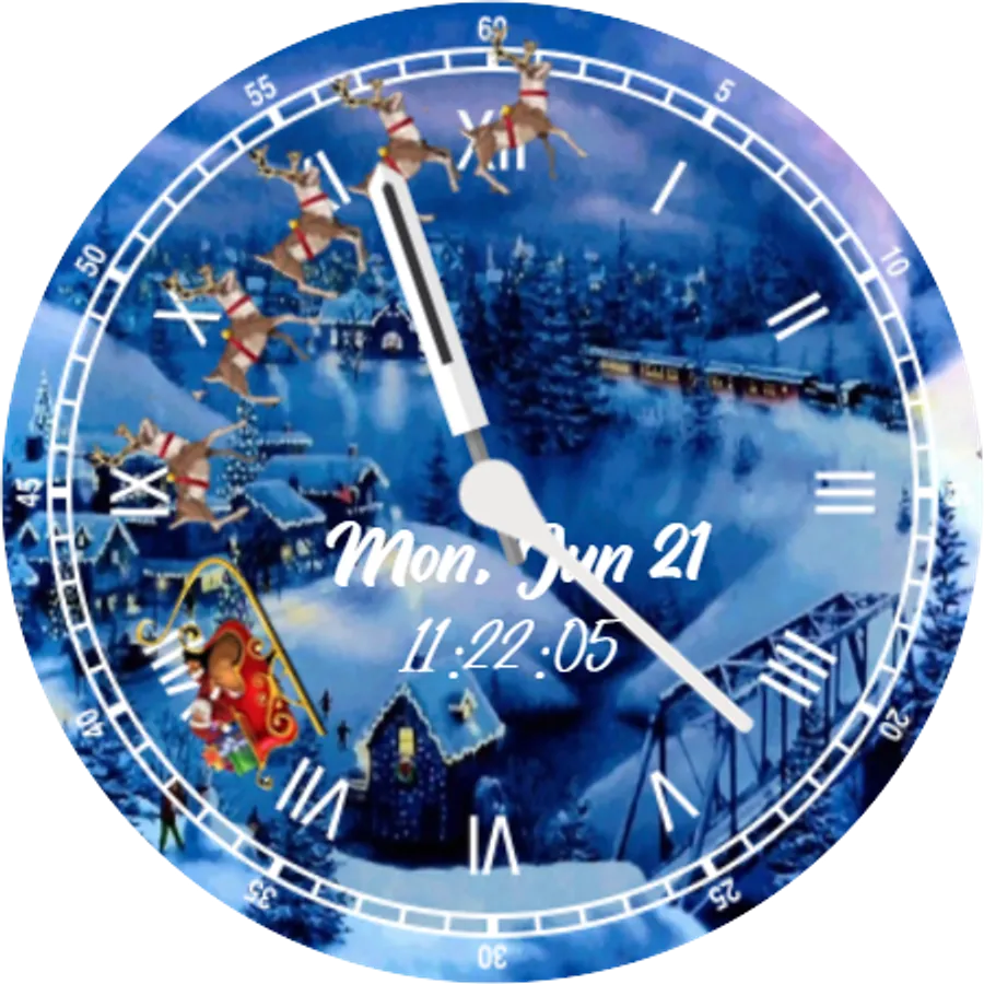 Animated holiday-themed watch face featuring Santa and his reindeer.