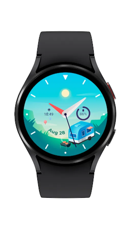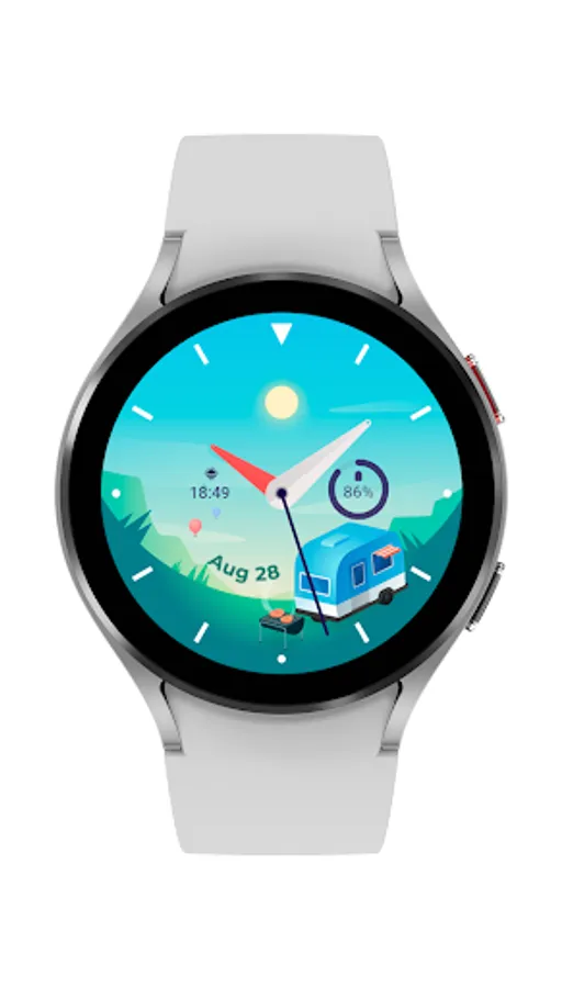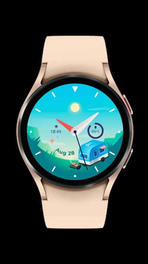 Отображение даты, заряда батареи, а также аналоговых часовых меток с отдельными касаниями в каждой области. показывает дату, цифровые часы и заряд батареи. Часы для любителей отдыхать на природе, а также циферблат меняется в зависимости от времени суток.