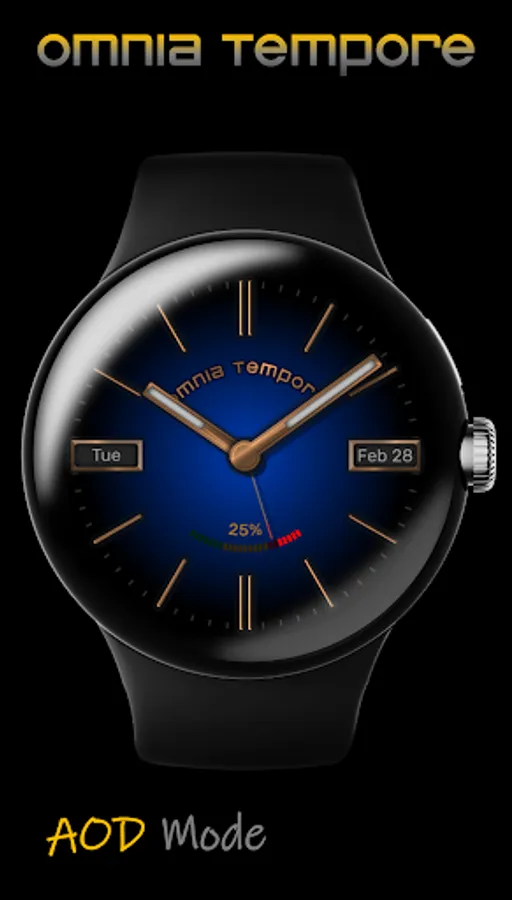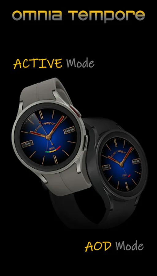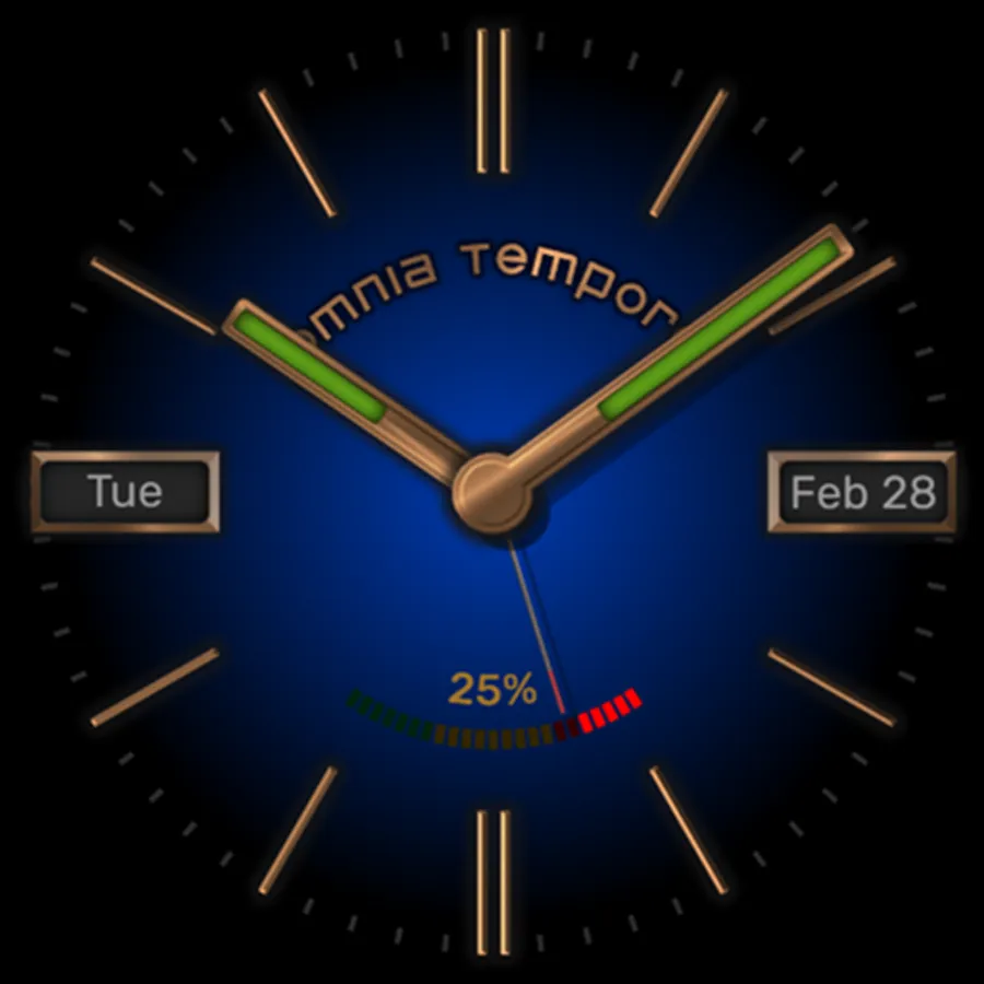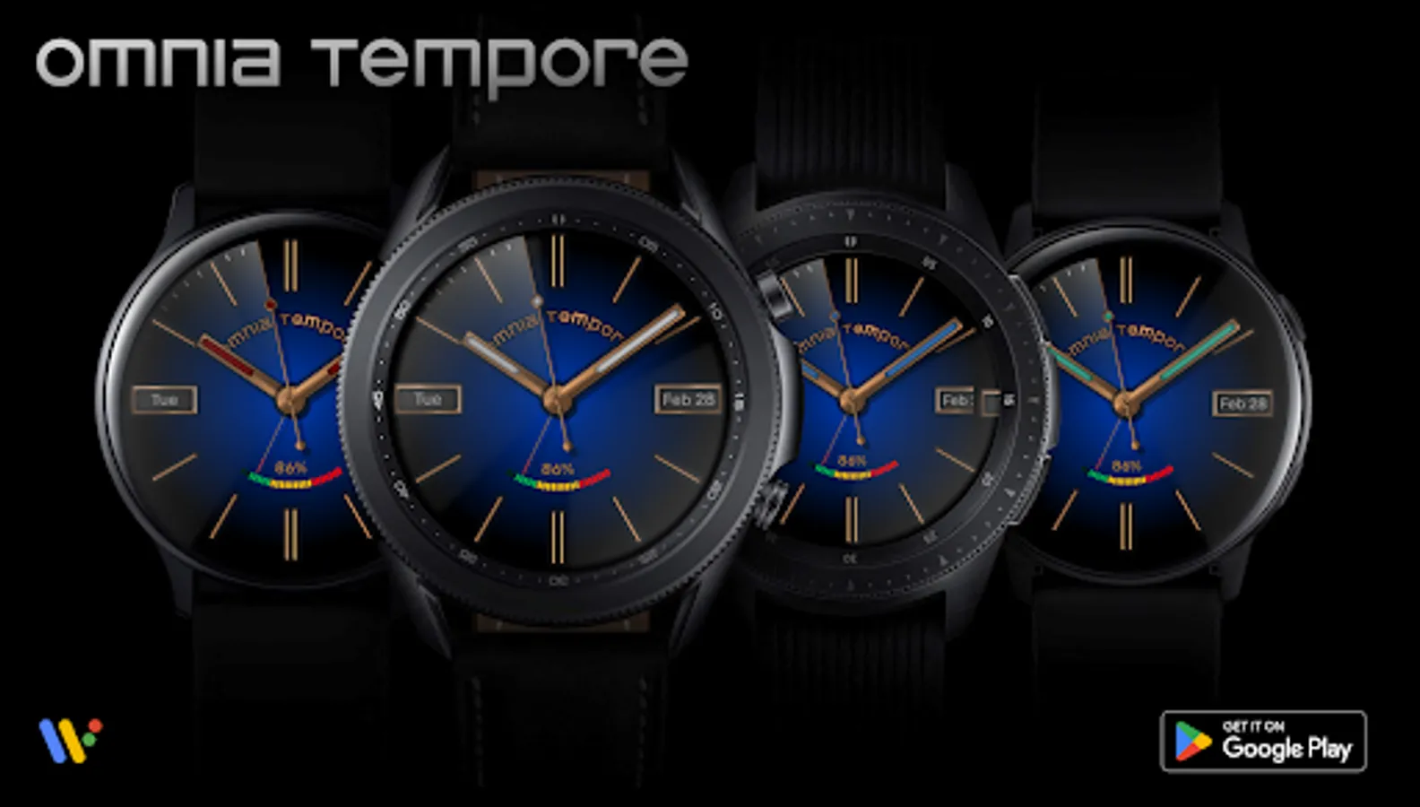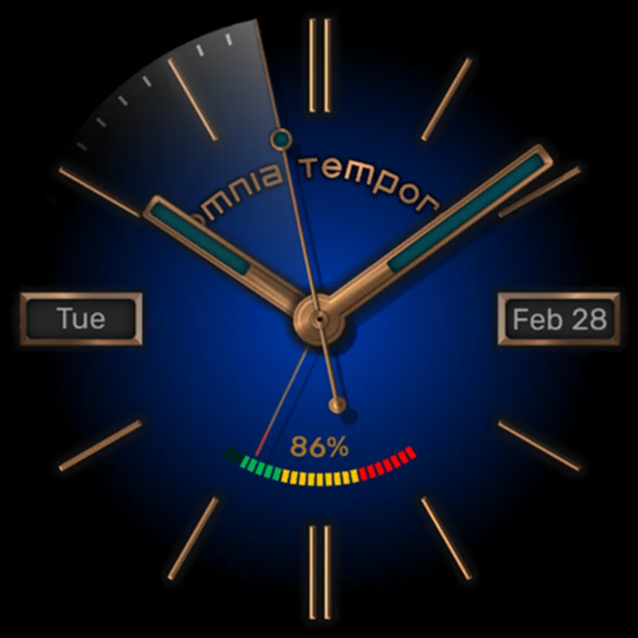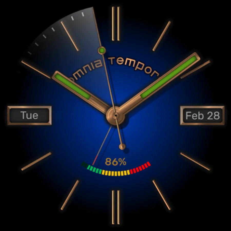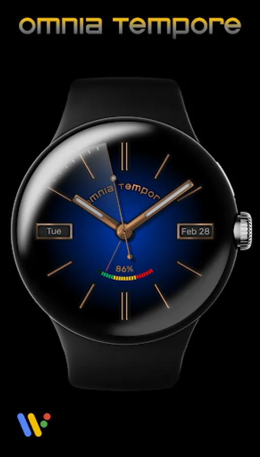 A handy, clearly-designed analog watch face for Wear OS devices from Omnia Tempore with customizable complications (4x). Ideal for everyday use.