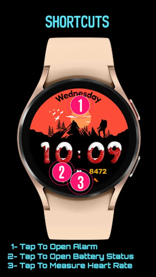 * Alarm, Battery Status & Heart Rate App shortcuts.