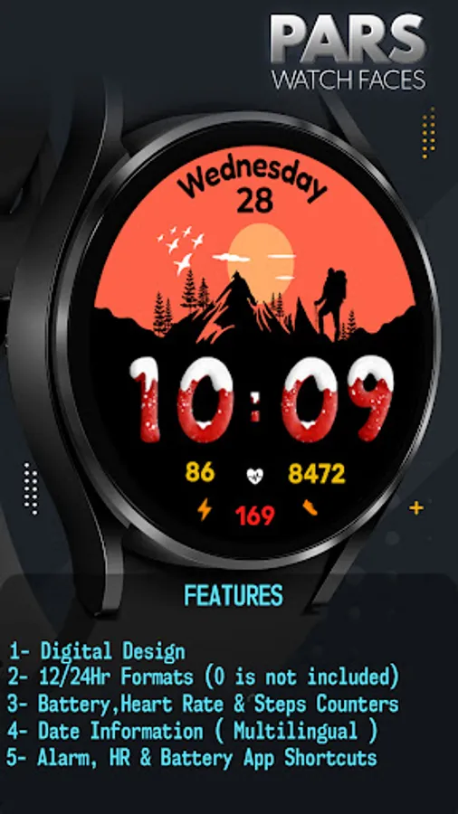 The perfect looks and easy to read Digital watch face, by Pars for Wear OS.