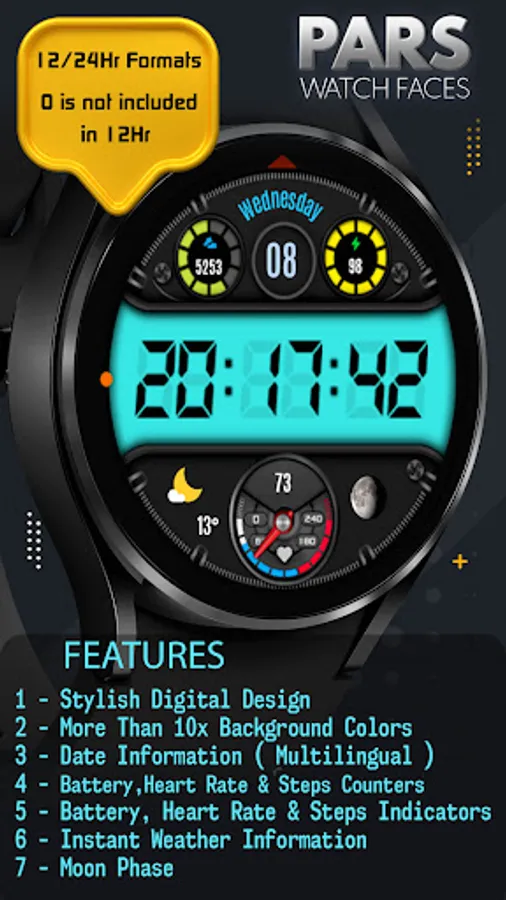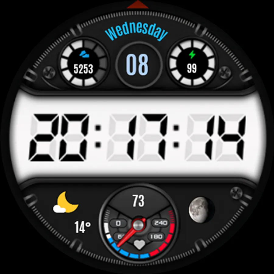 The perfect looks and easy to read Digital watch face, by Pars for Wear OS.